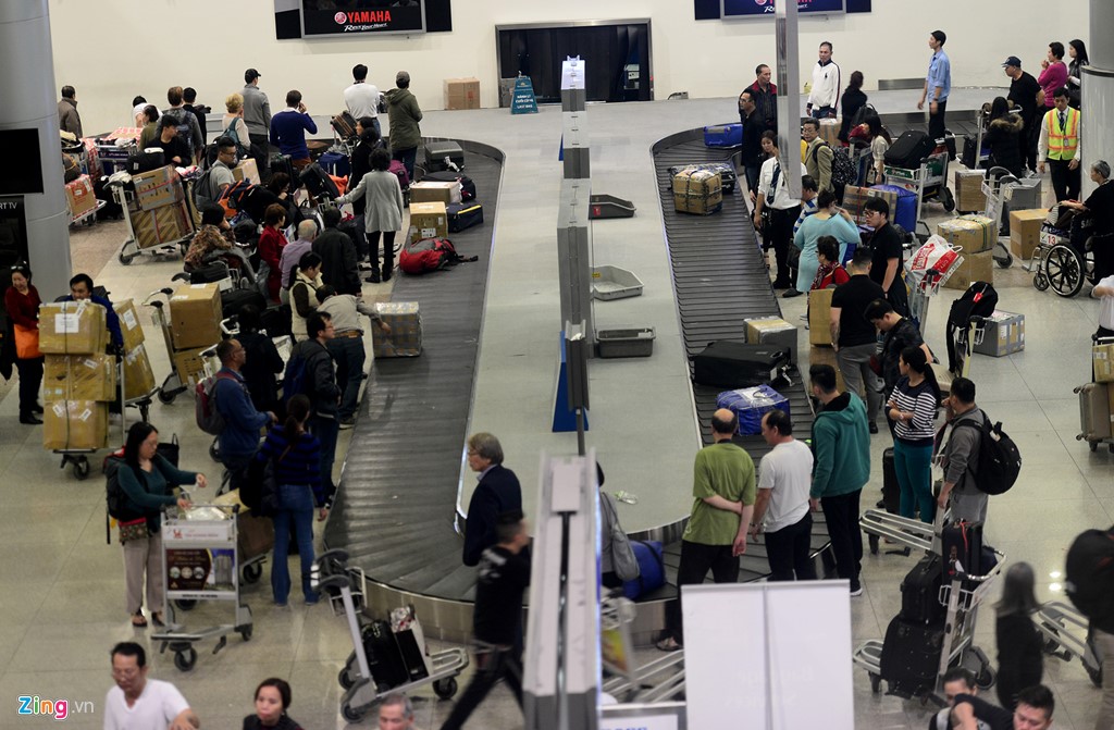 Do cùng lúc có nhiều chuyến bay hạ cánh, bên trong khu vực lấy hành lý khách phải đợi rất lâu.