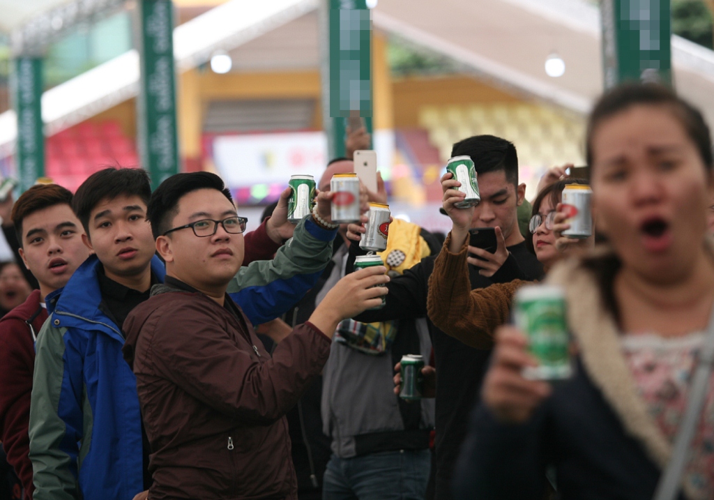 Trưa 26/11, thời tiết ngoài trời ở Hà Nội khá lạnh do ảnh hưởng của đợt không khí lạnh tăng cường. Thế nhưng, hàng nghìn người dân ở Thủ đô vẫn kéo nhau rất đông đến sân vận động để uống bia miễn phí.