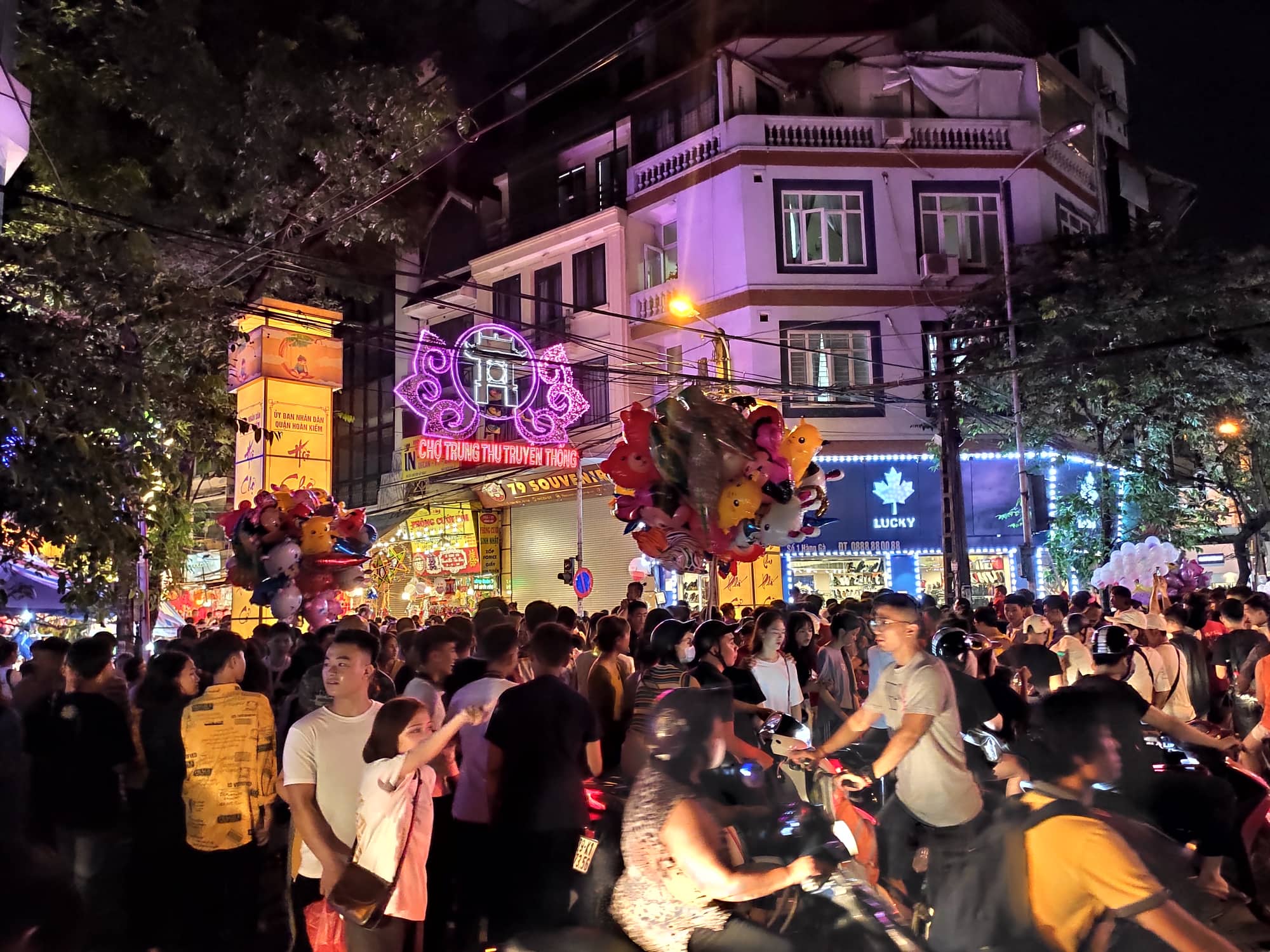 Lượng người đổ về phố Hàng Mã rất đông khiến việc di chuyển khó khăn.