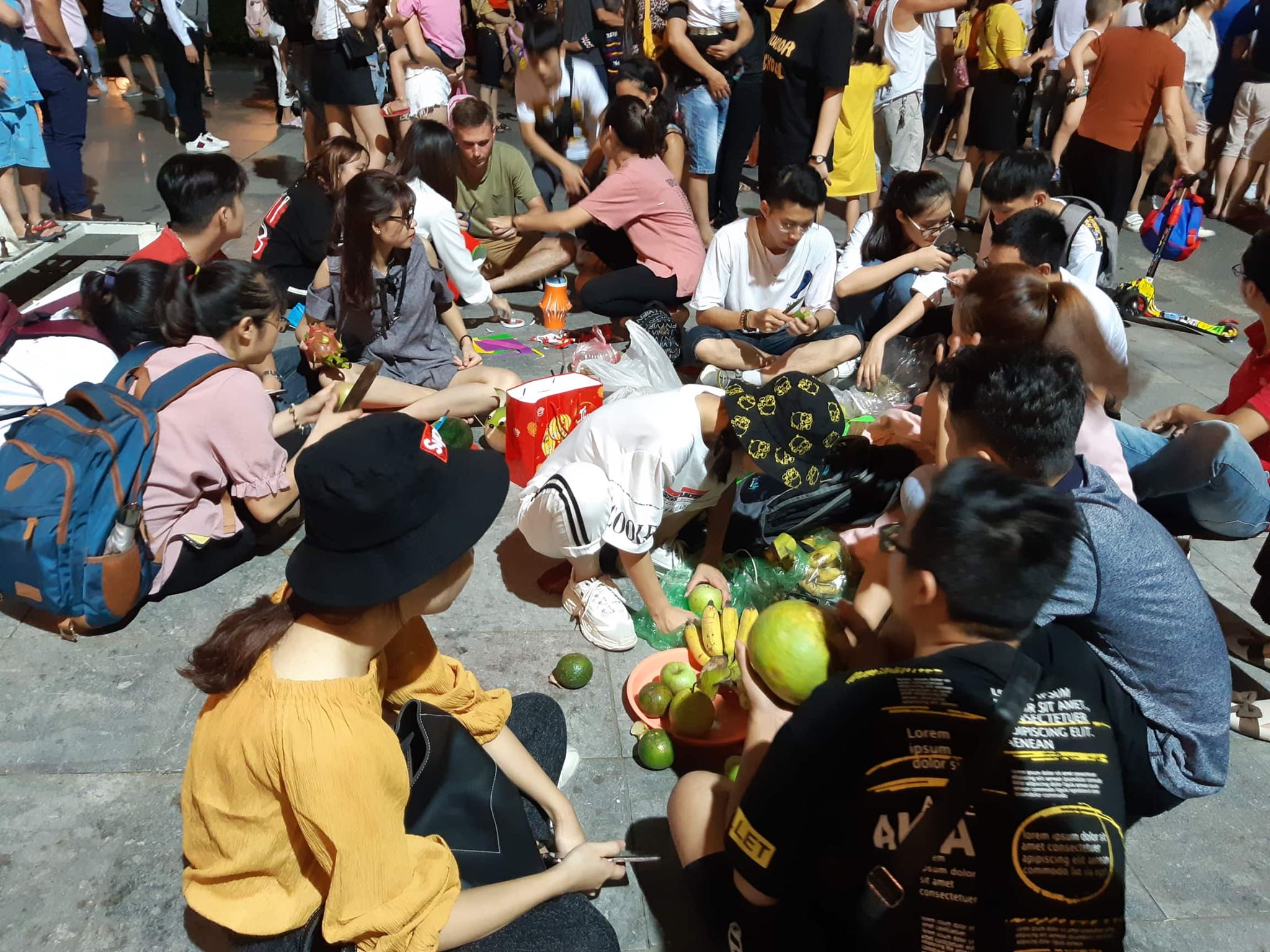 Một số người còn mang đồ ăn tới và thưởng thức vui vẻ