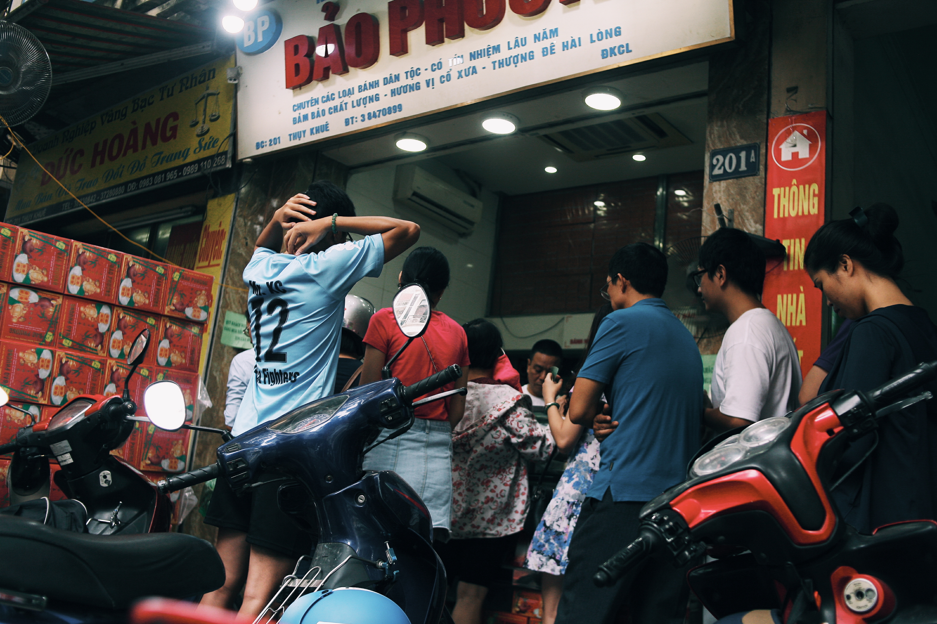 Cảnh tượng đông đúc trước cửa hiệu bánh Bảo Phương.