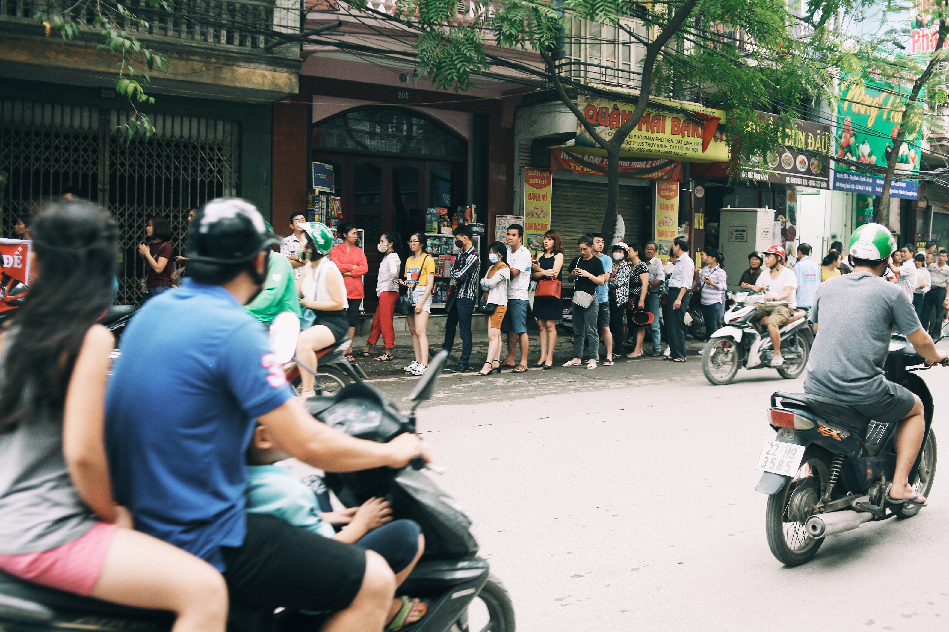 Khung cảnh trước cửa hiệu bánh đôi lúc còn trở nên hỗ loạn vì người ra người vào, người dừng xe, người đứng chờ…
