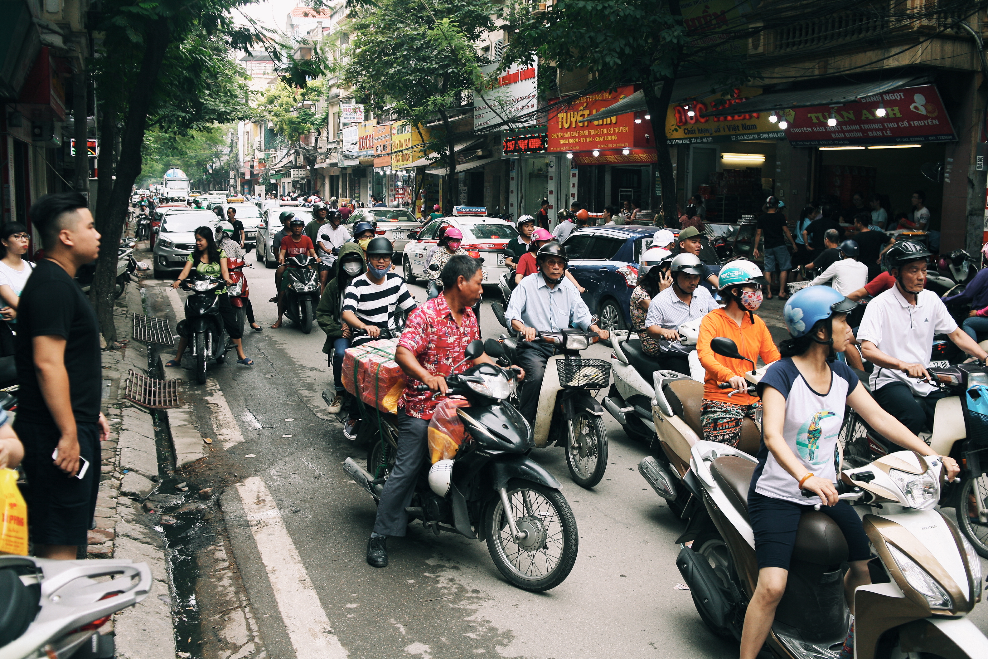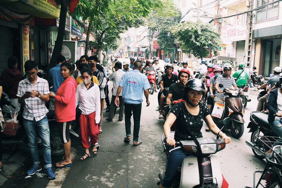 Đường Thụy Khuê đông đúc, tắc nghẽn vì quá đông người đứng xếp hàng chờ mua bánh Trung thu.