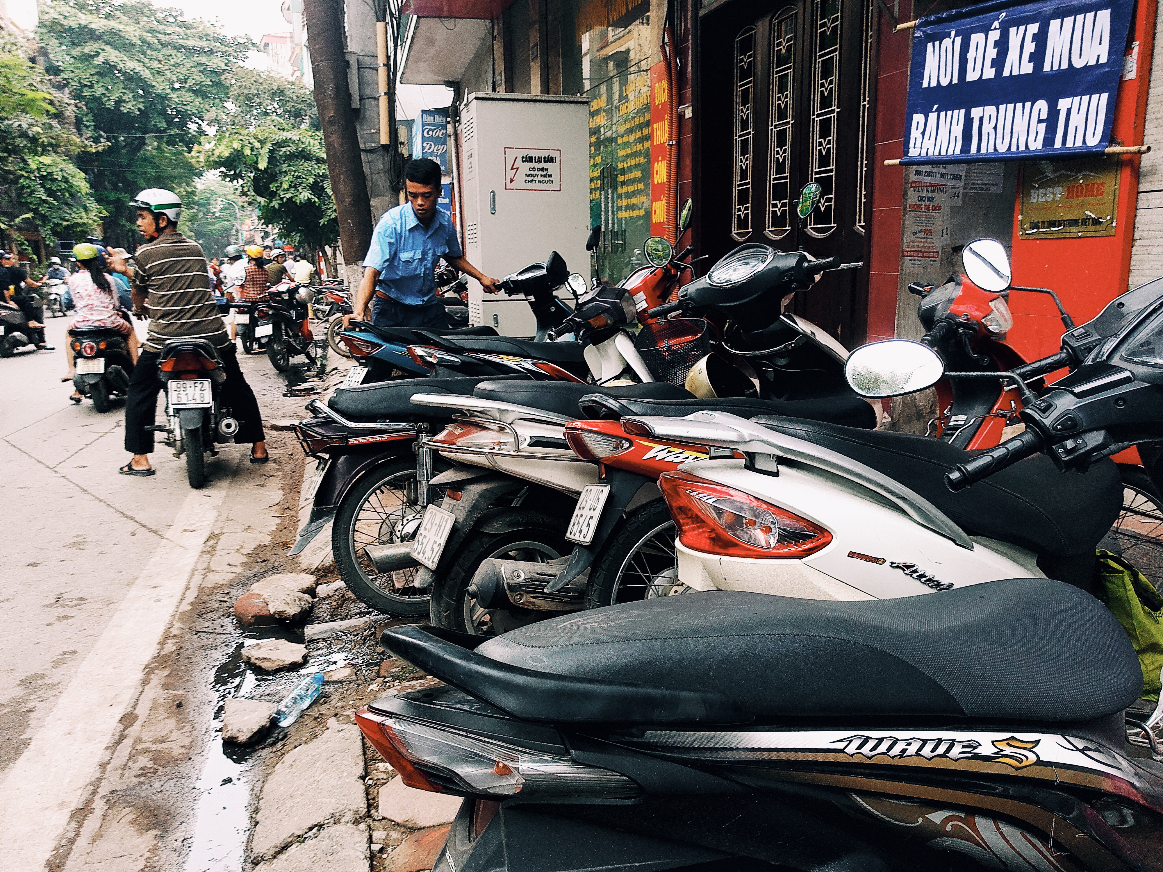 Cửa hàng cũng có nơi để xe, phục vụ khách mua bánh.