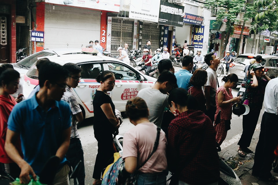 Phía bên ngoài, hàng trăm người dân xếp hàng dài chờ đợi.