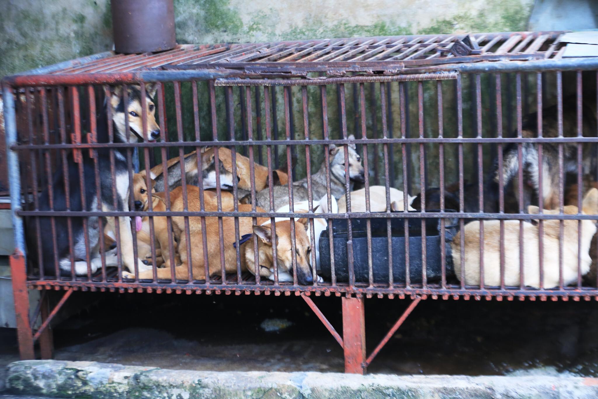 Hình ảnh những con chó trong lồng chờ bị giết thịt