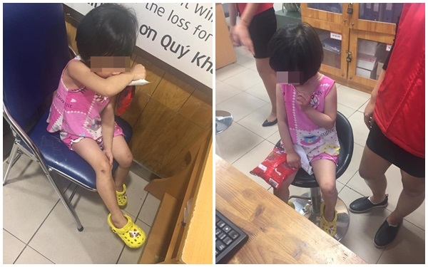 Bé gái ngồi trong phòng của ban quản lý siêu thị, sau khi người mẹ bỏ đi. Ảnh do bạn M.M cung cấp.