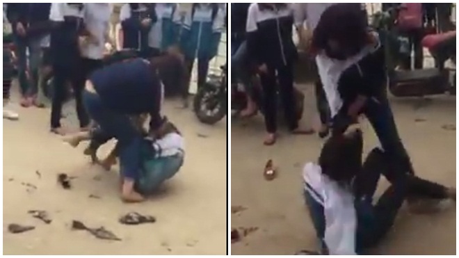 Theo đó hai nữ sinh này vẫn mặc áo đồng phục trung học lao vào đánh chửi thậm tệ dưới sự cổ vũ nhiệt tình của những người chứng kiến. Thậm chí còn có một giọng nữ khuyên hai nữ sinh này lên gối, lột áo và giật tóc nhau. Tuy nhiên, cuối clip xuất hiện một phụ nữ luống tuổi đứng ra ngăn cản vụ ẩu đả nhưng bị những người chứng kiến gạt tay ra, chỉ khi có một cô gái trẻ vào giằng tay hai nữ sinh này thì cuộc đánh lộn mới chấm dứt.