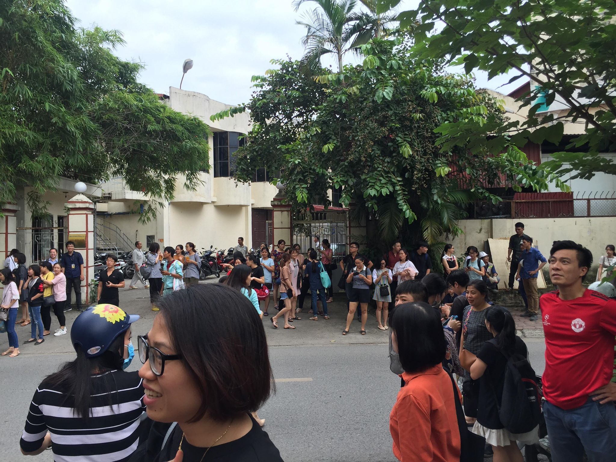 Sáng nay (8/9), nhiều nhân viên phòng tại một tòa nhà cao tầng phường Bạch Đằng (Hà Nội) bất ngờ tháo chạy ra ngoài đường trong tình trạng hoảng loạn. Theo lời kể của một số nhân viên, khoảng 9h30 khi họ đang làm việc tại các tòa nhà cao ốc thì bất ngờ phát hiện đồ đạc, mặt sàn rung chuyển. Do lo sợ động đất, nhiều người đã vội vã chạy xuống dưới đường.