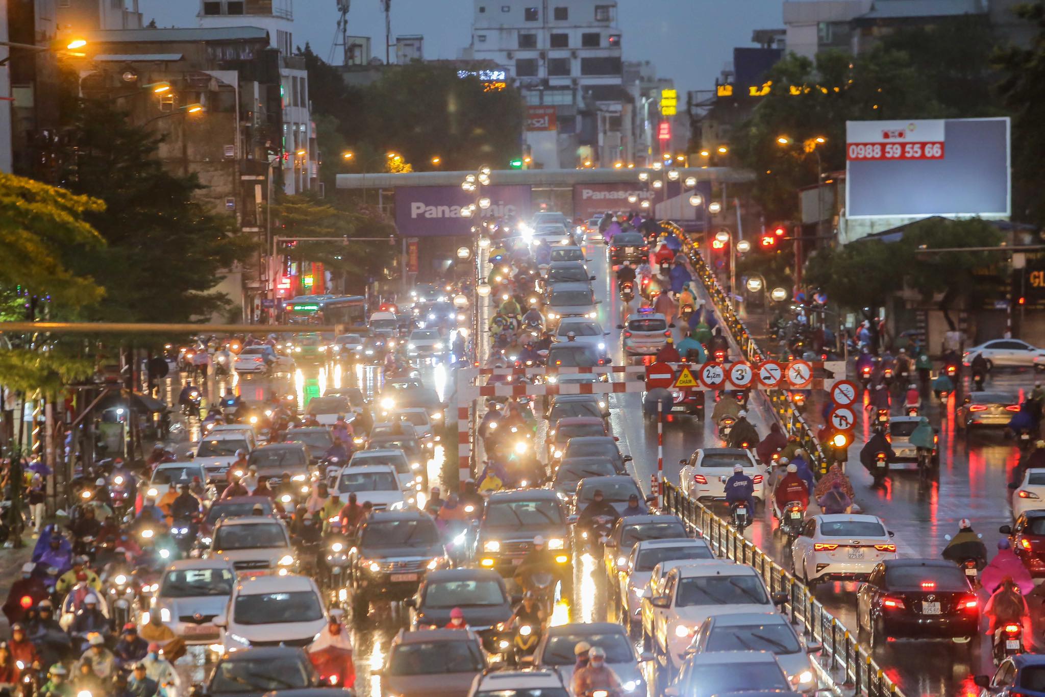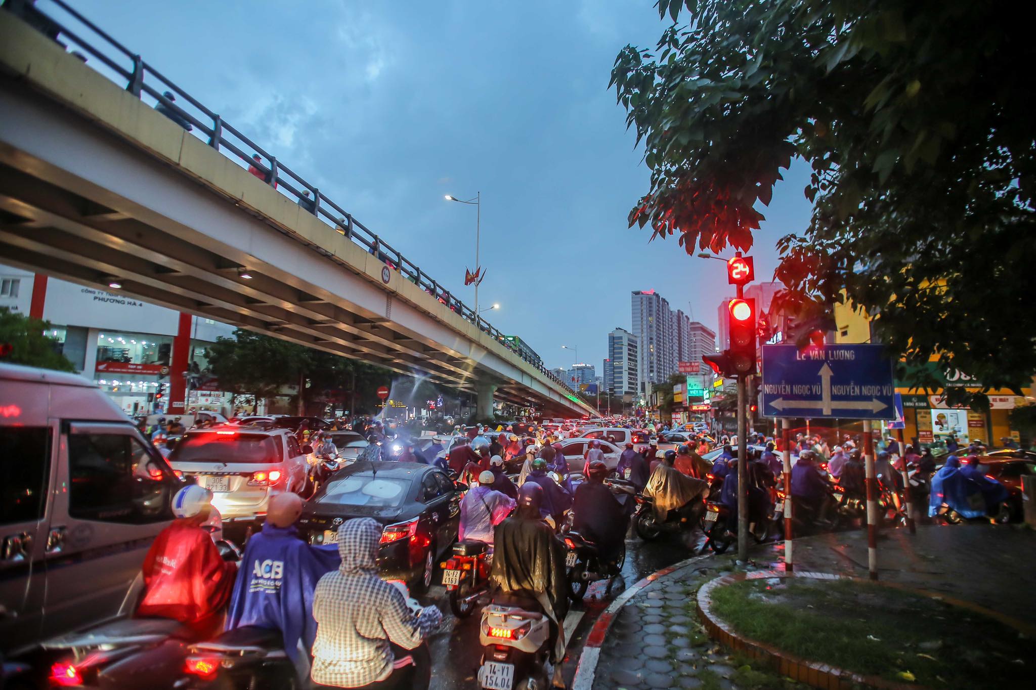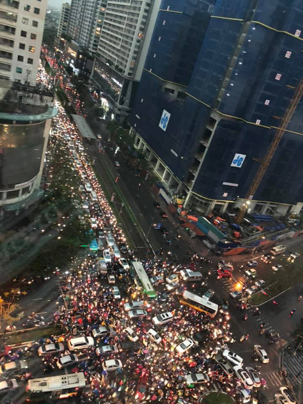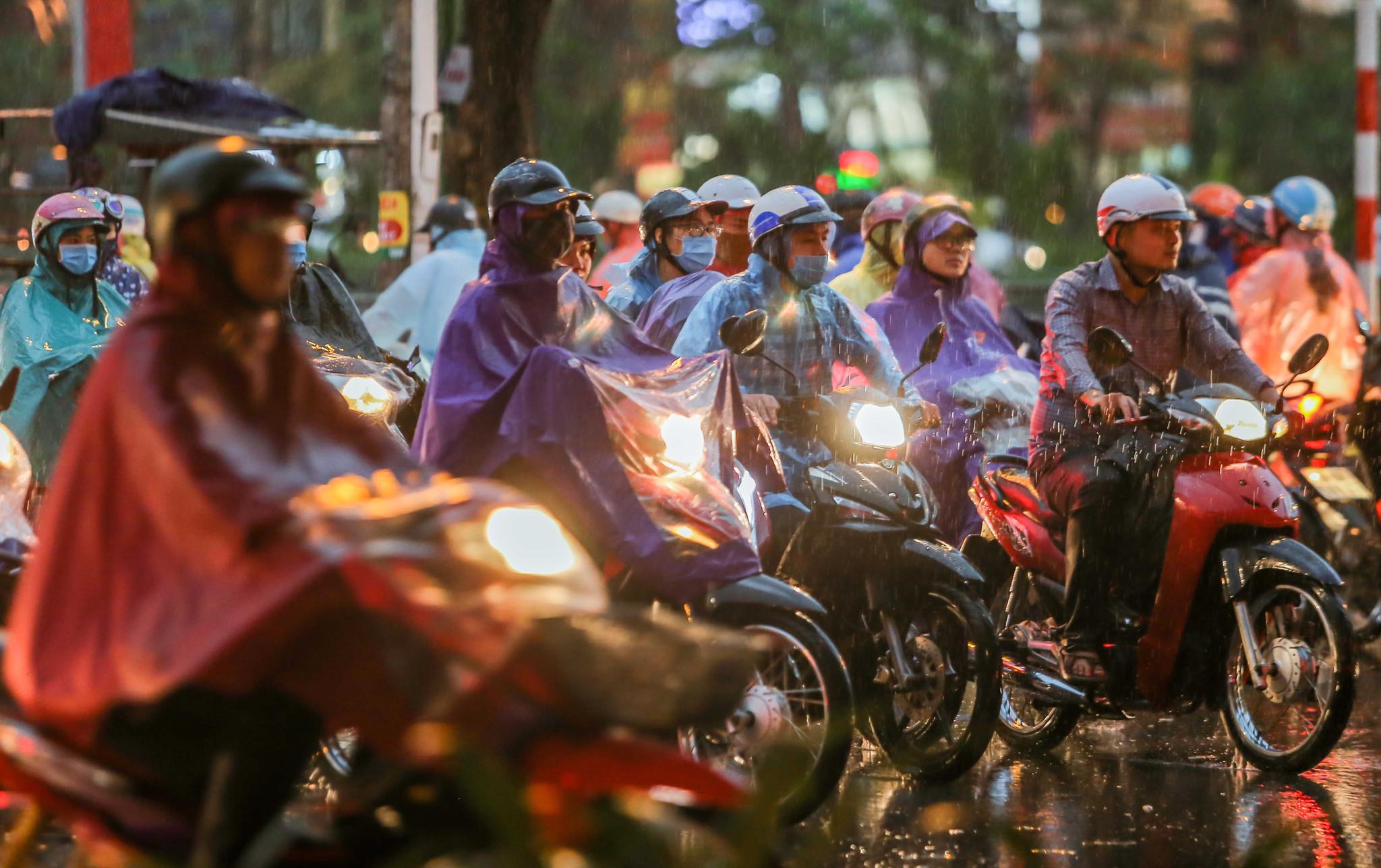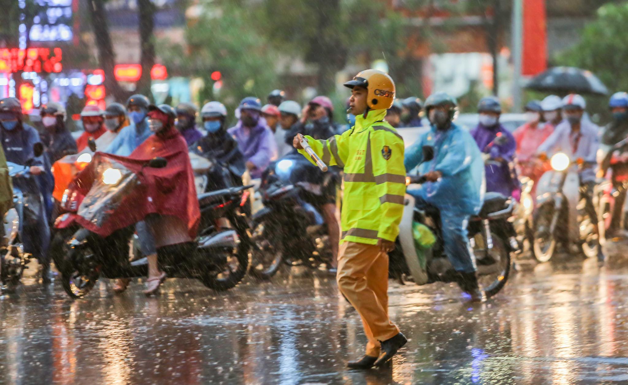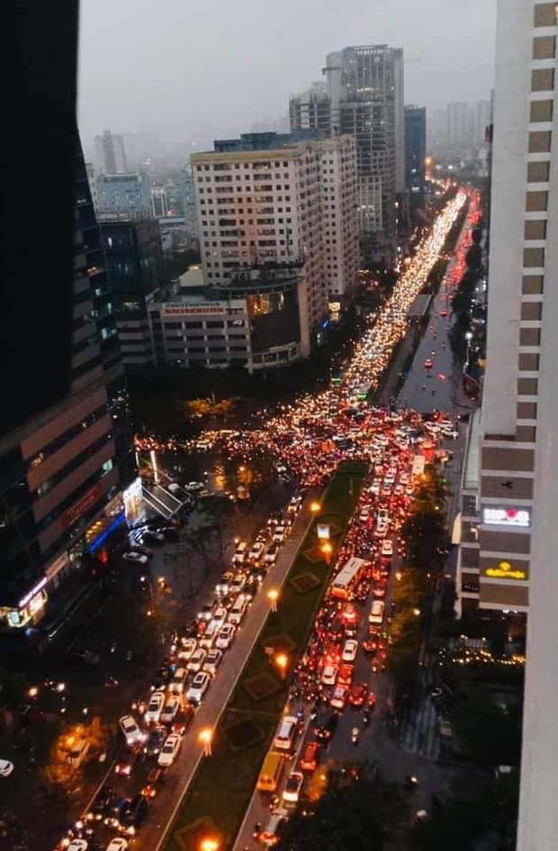 Do mưa giông xảy ra đúng lúc giờ tan tầm khiến đường phố thêm ùn tắc.