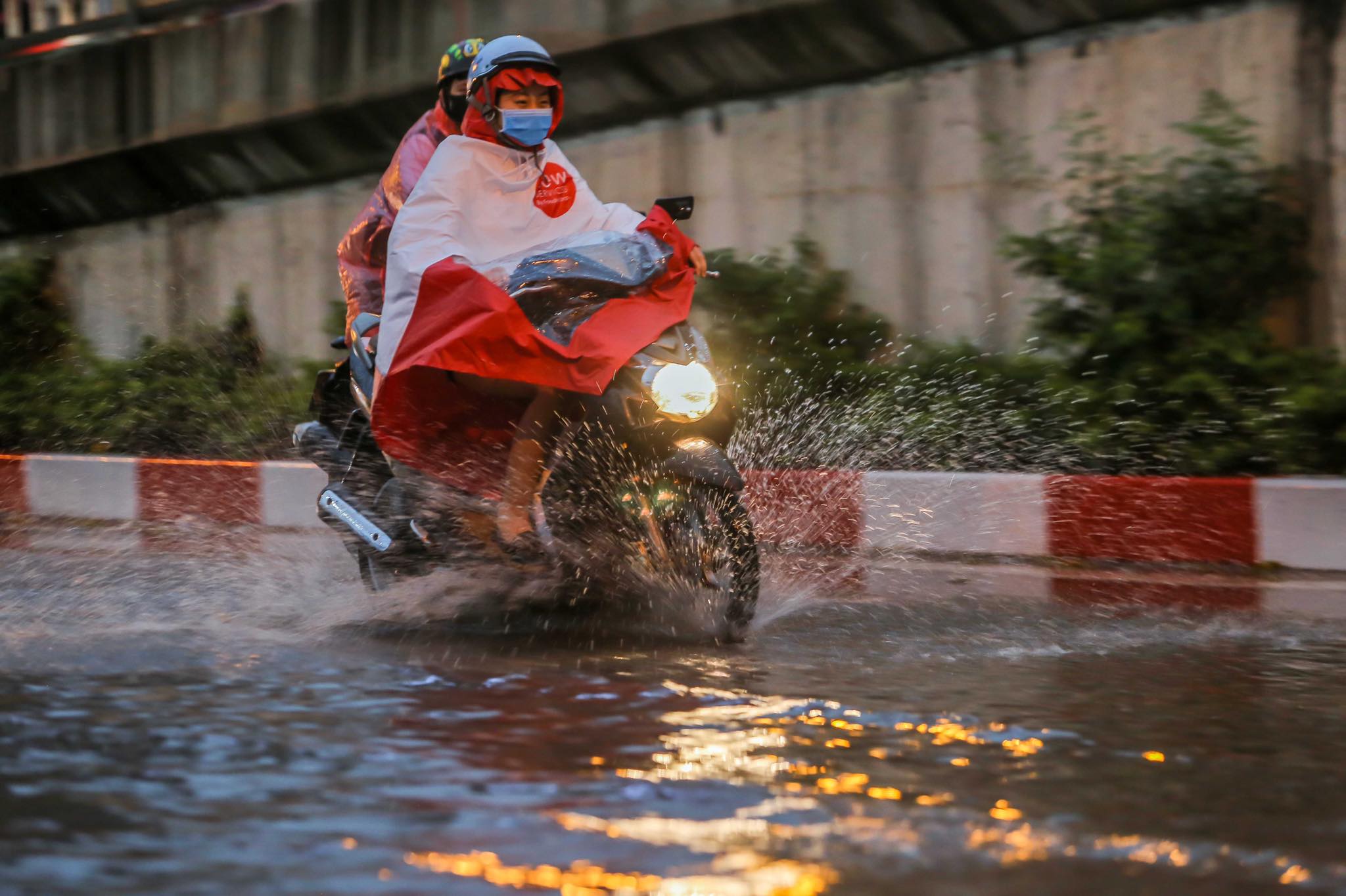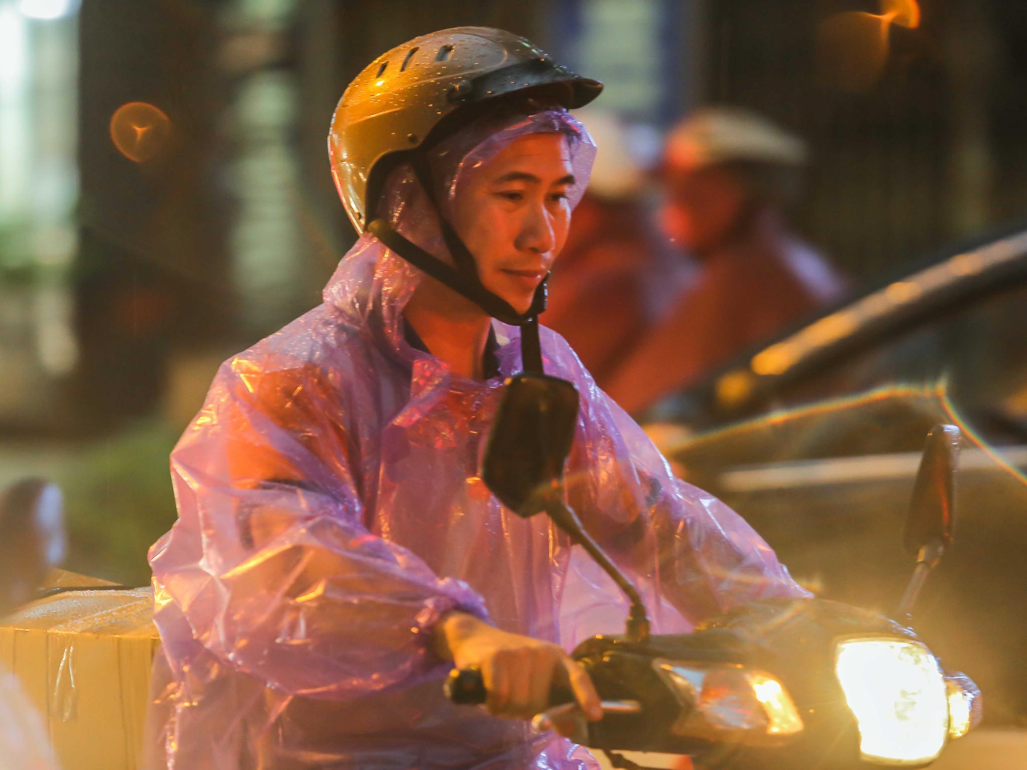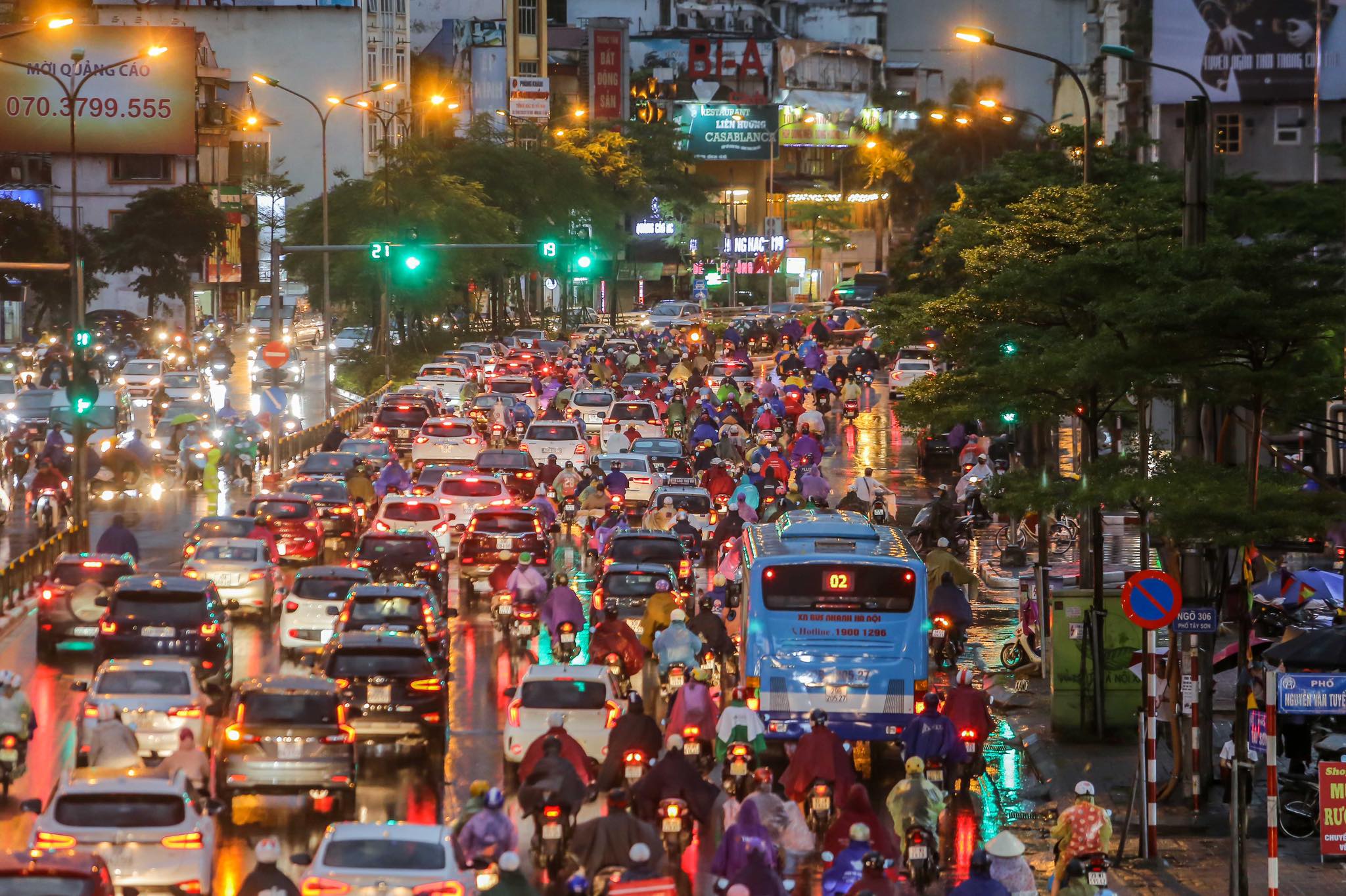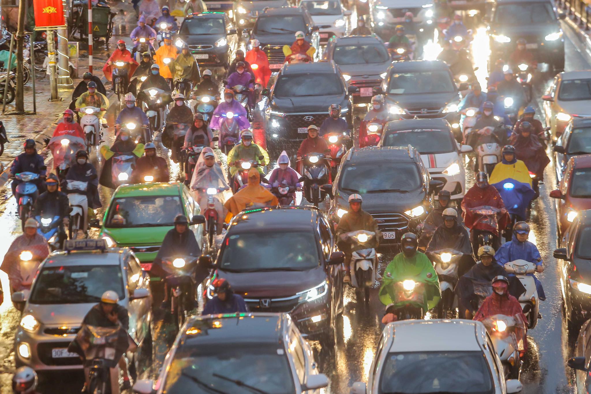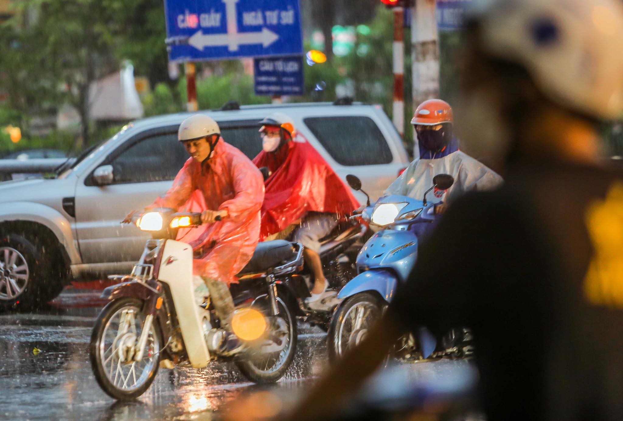 Do mưa giông xảy ra đúng lúc giờ tan tầm khiến đường phố thêm ùn tắc.