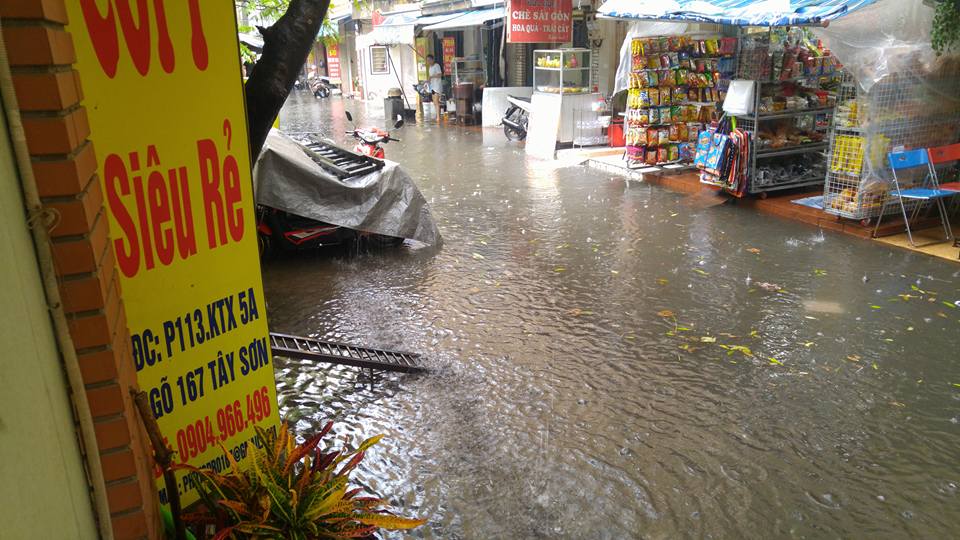 Mưa lớn khiến tuyến đường đi qua khu vực siêu thị Pico ở Tây Sơn bị ngập sâu. Nguồn: facebook