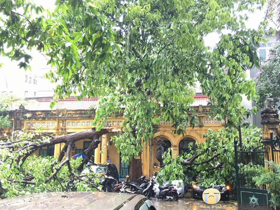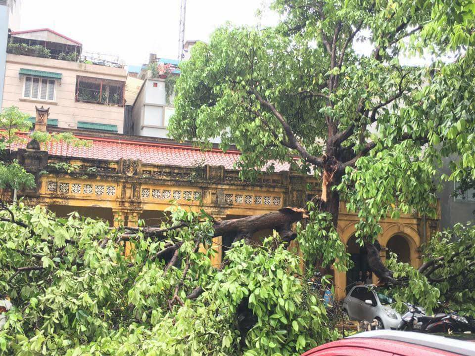 Một cây lớn bị gãy đổ trên ngõ Tây Sơn.