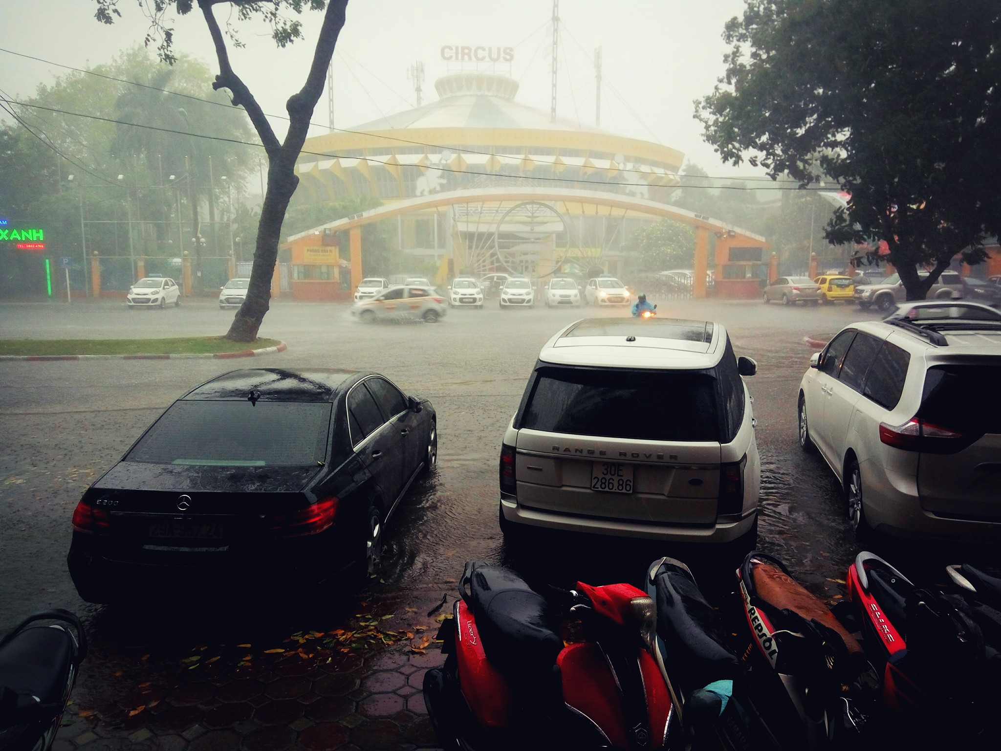 Mưa to bất ngờ lại kèm gió khiến nhiều người đi đường gặp khó khăn trong việc tìm chỗ tránh mưa. Mưa lớn diễn ra trong khoảng 40 phút sau đó tạnh dần.