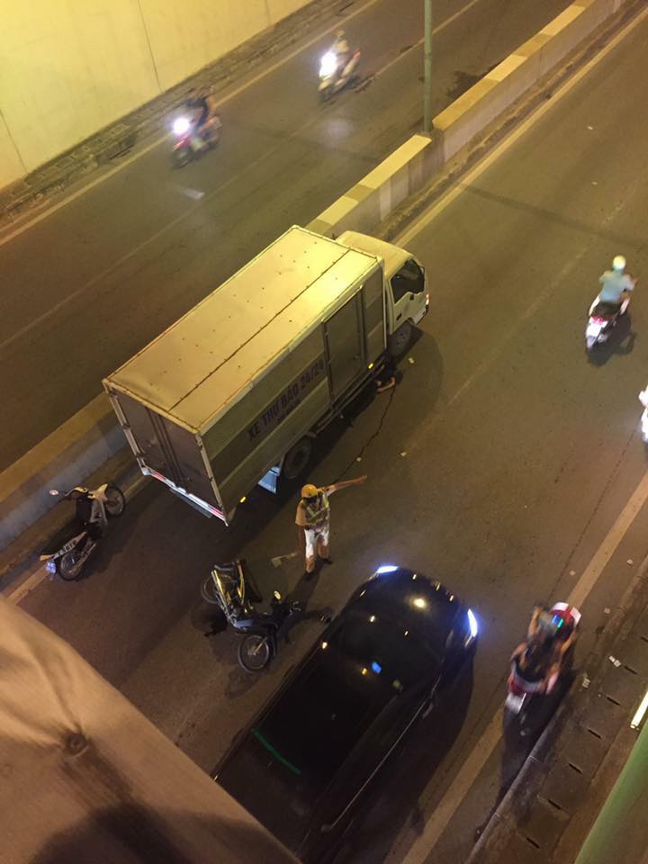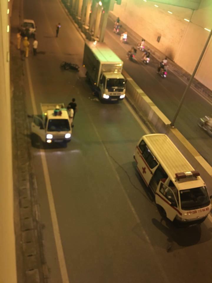 Vào khoảng thời gian trên một nam thanh niên điều khiển xe máy BKS 29N- 5579 đã xảy ra va chạm với xe tải mang BKS 29H-00528 đang lưu thông cùng chiều tại hầm chui Kim Liên theo hướng đi Đại Cồ Việt.