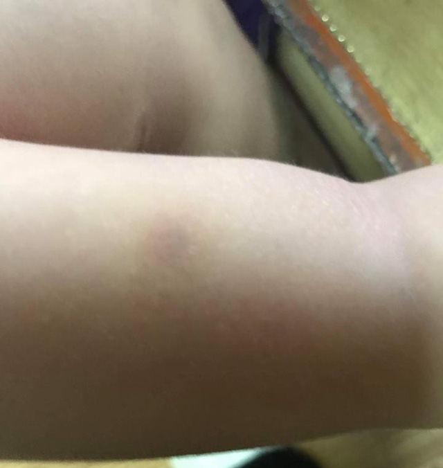Gia đình cho biết, ngoài mặt, đùi, con mình cũng bị thâm cả tay sau buổi học ngày 21/8.