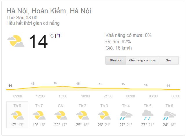 Khu vực Hà Nội: Từ 24-26/11, nhiều mây, có mưa vài nơi, riêng ngày 24, ngày 25 có mưa nhỏ rải rác. Gió đông bắc cấp 2-3. Trời rét, riêng ngày 24 - 25 trời rét đậm.