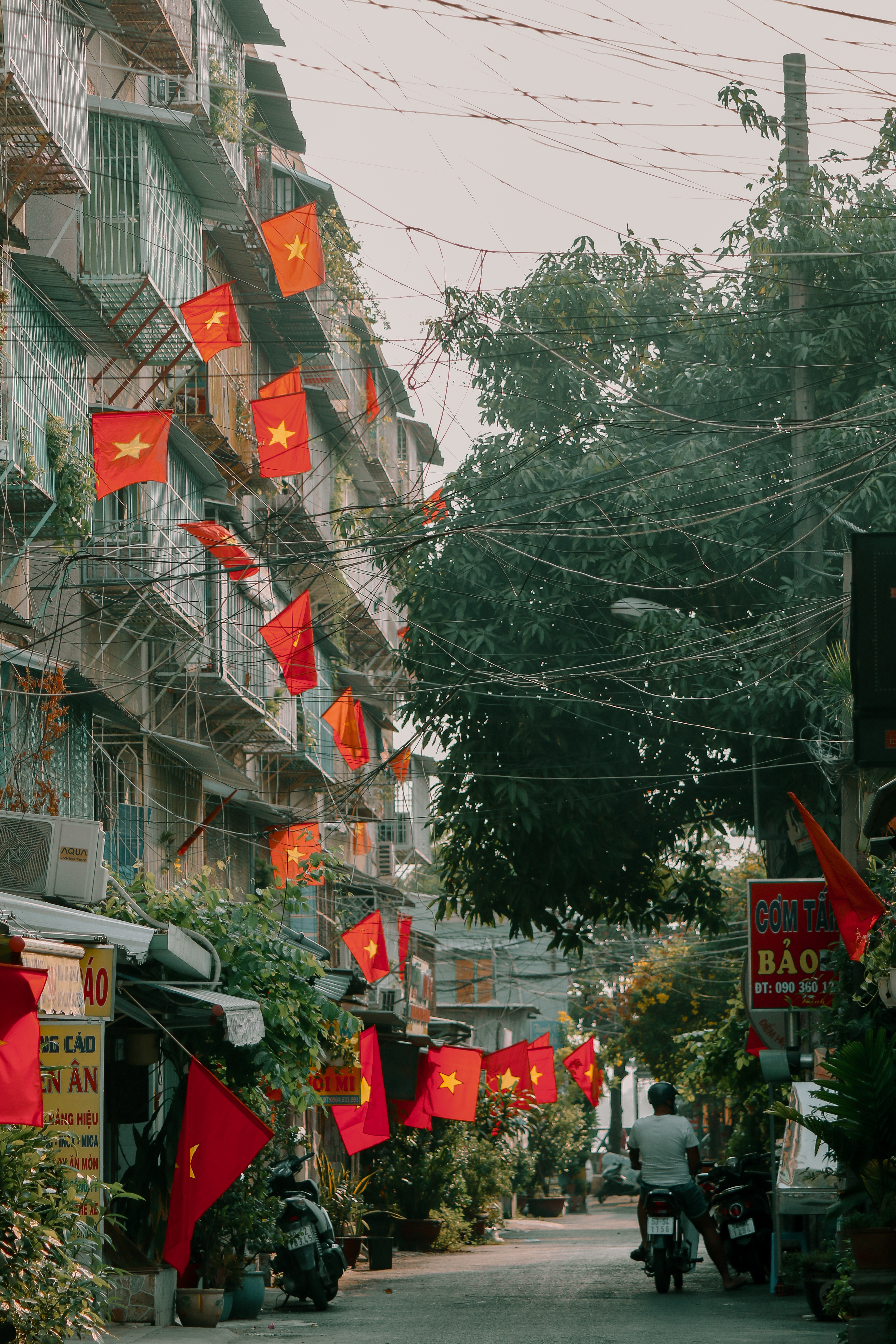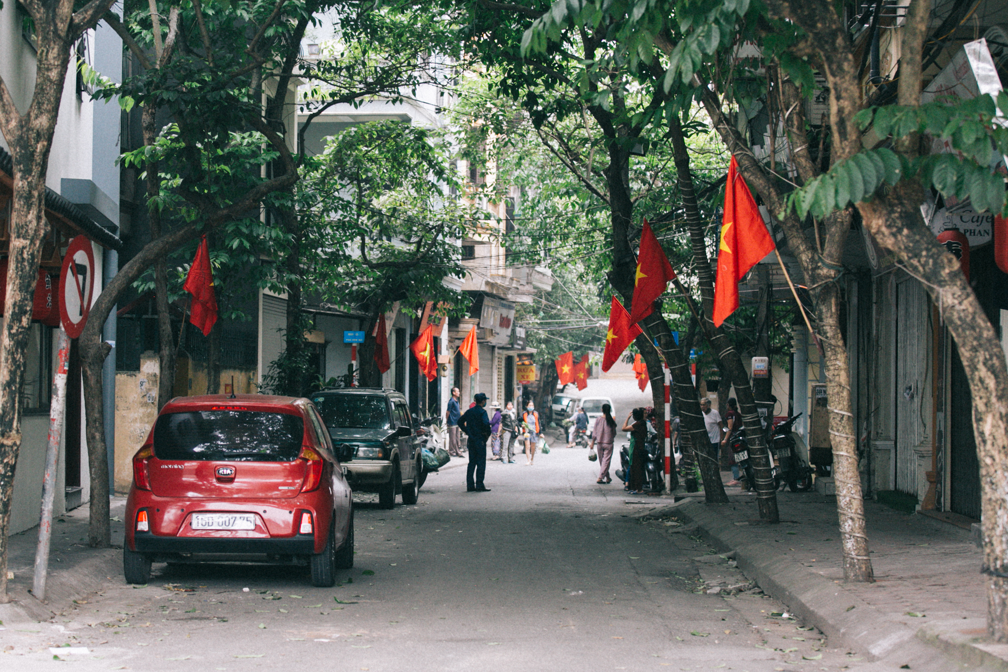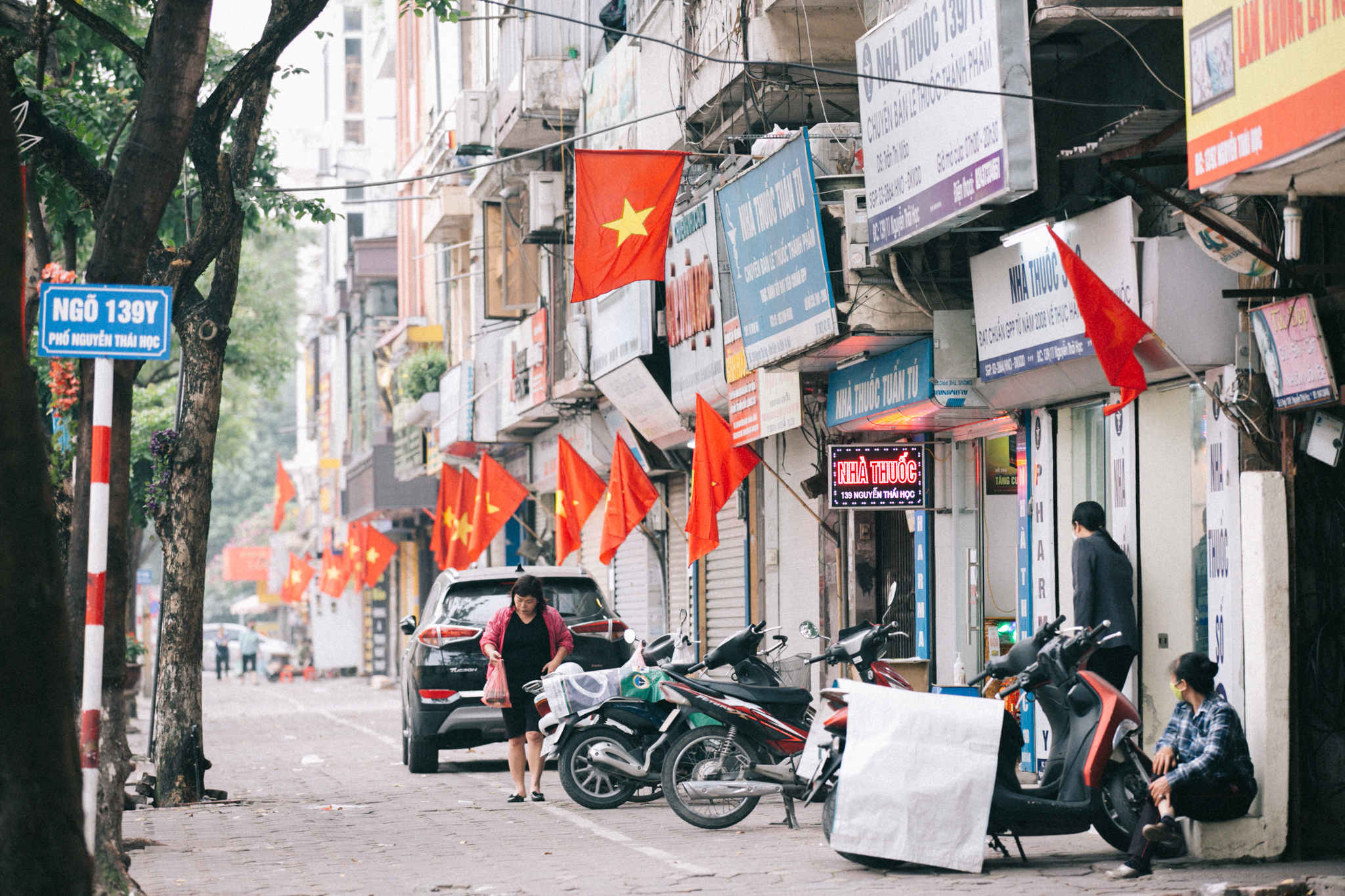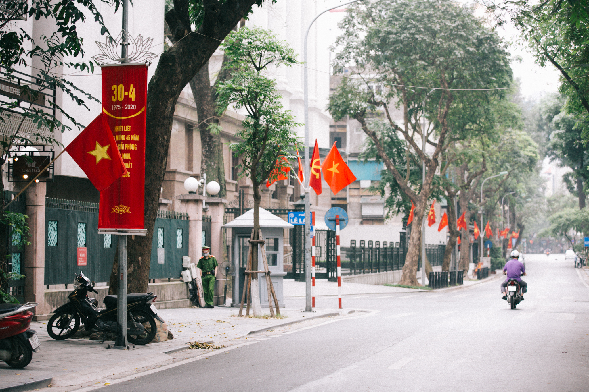 Dưới bóng cờ đỏ sao vàng rợp khắp các con phố, thành phố náo nhiệt thường ngày bỗng trở nên bình yên đến lạ.