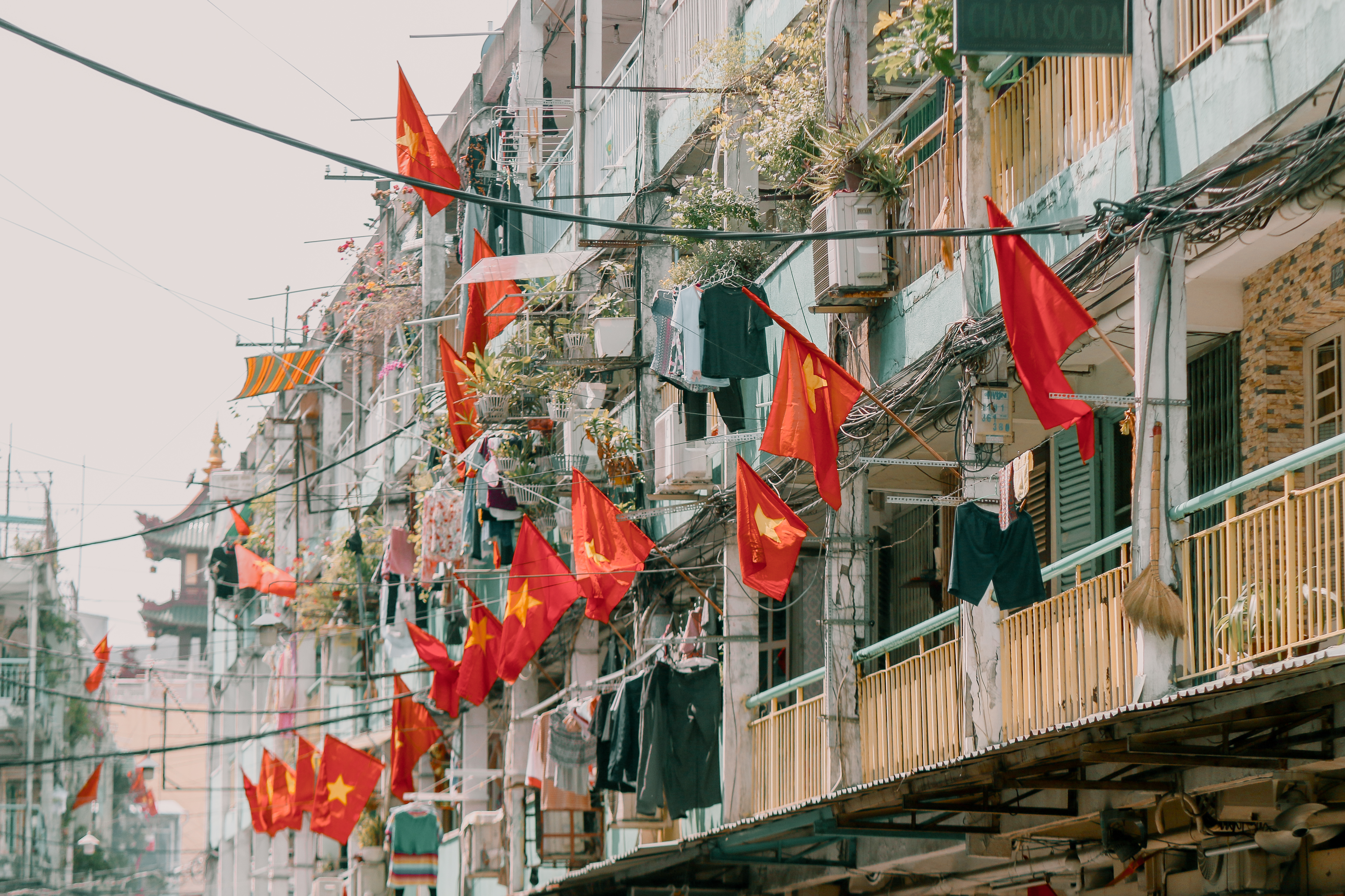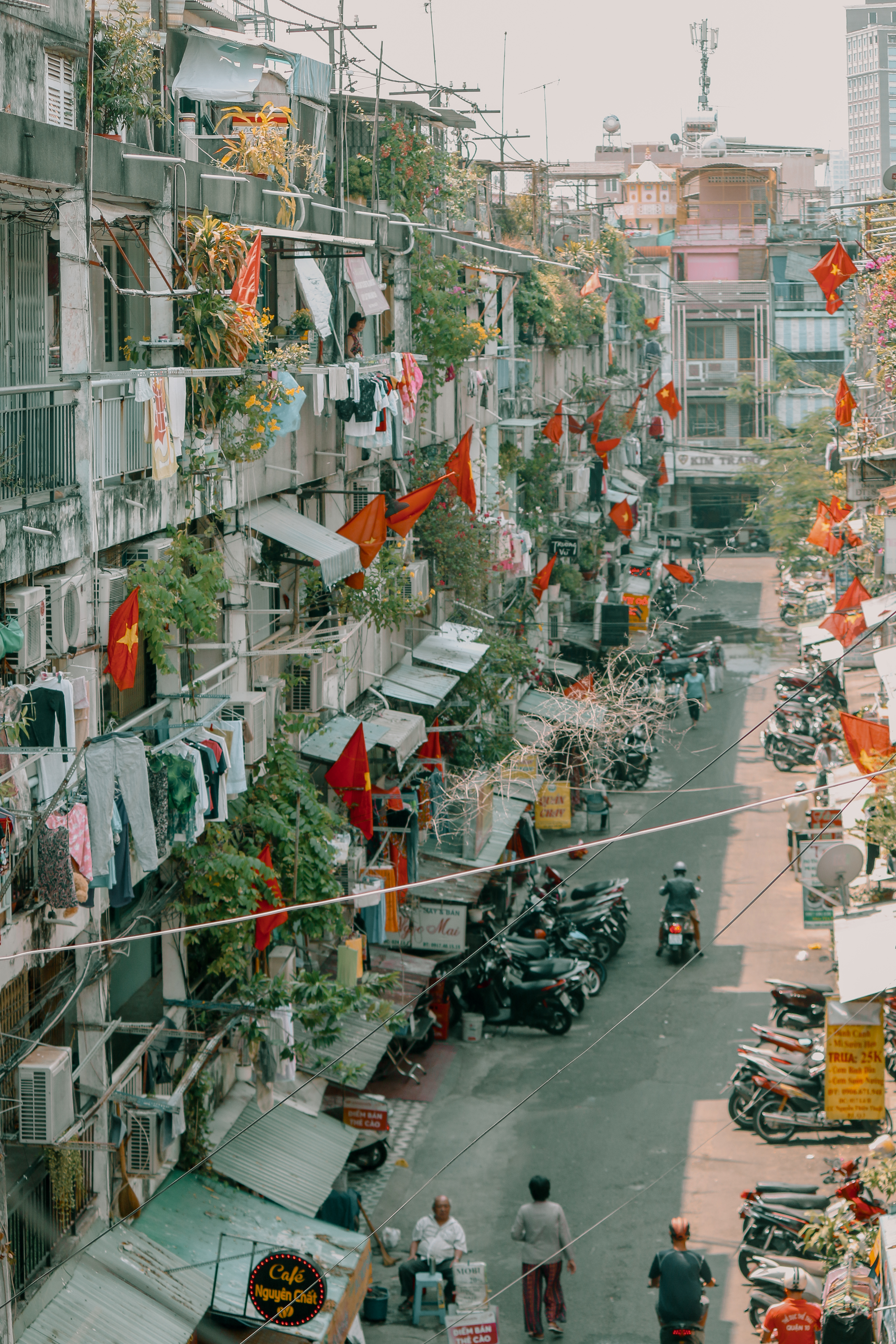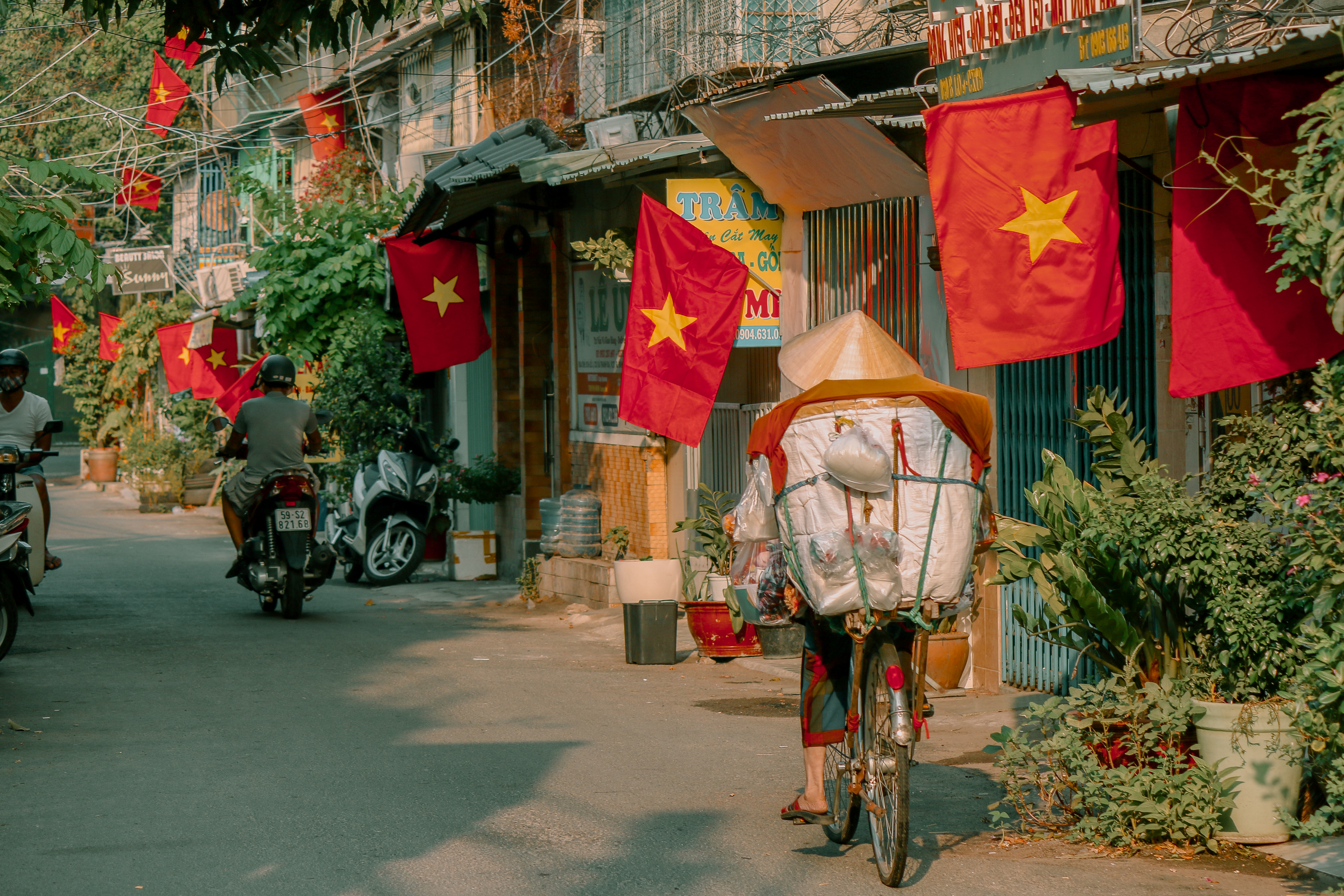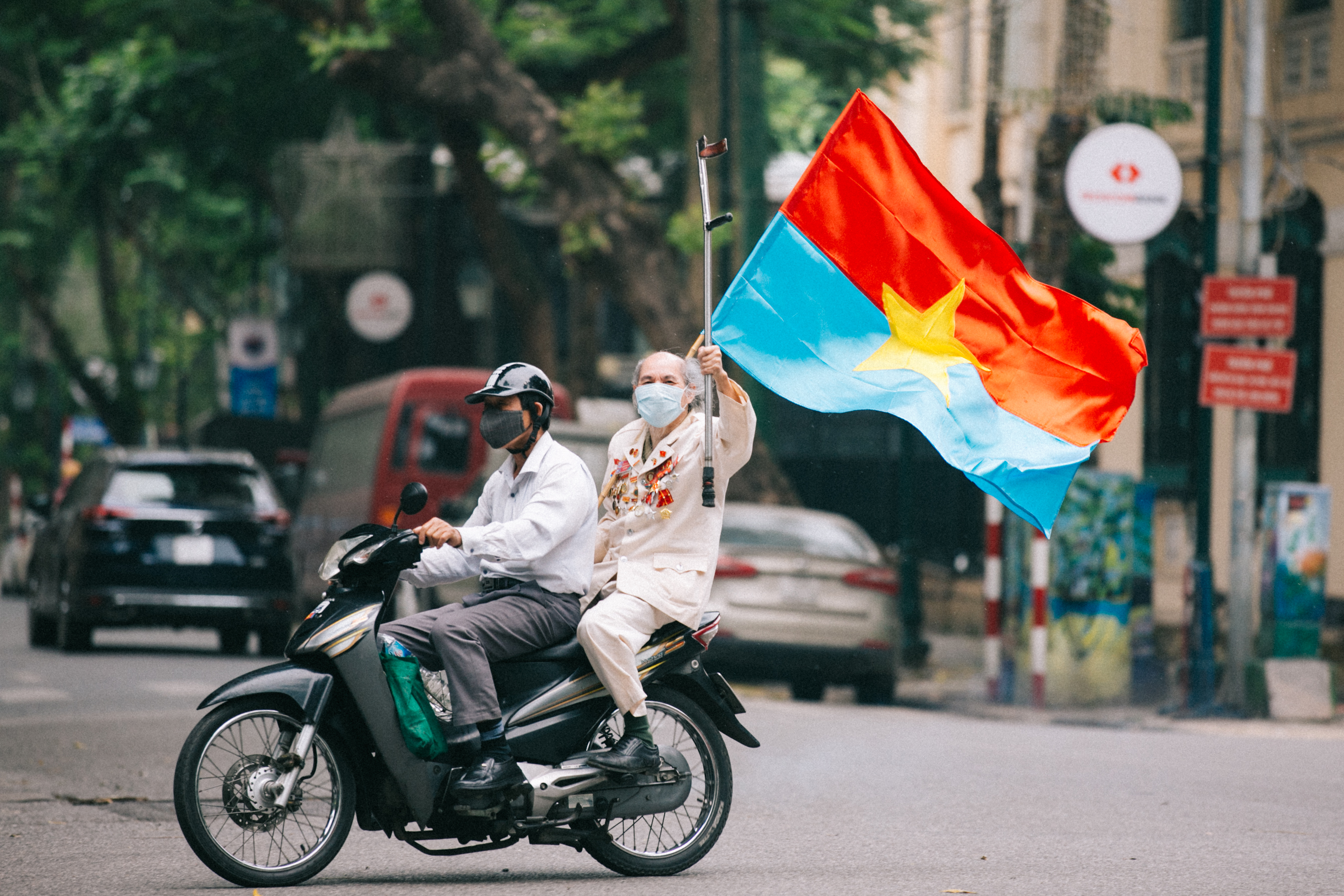 Dưới bóng cờ đỏ sao vàng rợp khắp các con phố, thành phố náo nhiệt thường ngày bỗng trở nên bình yên đến lạ.