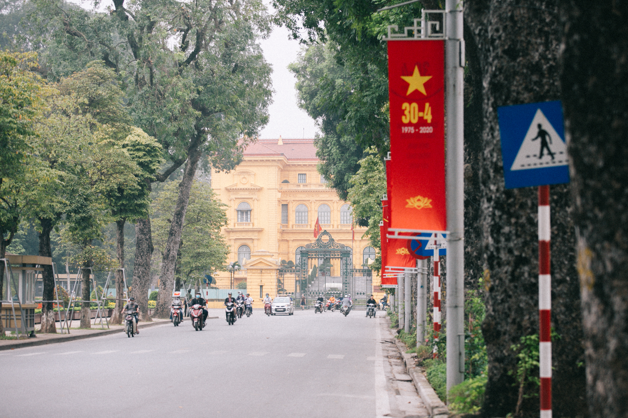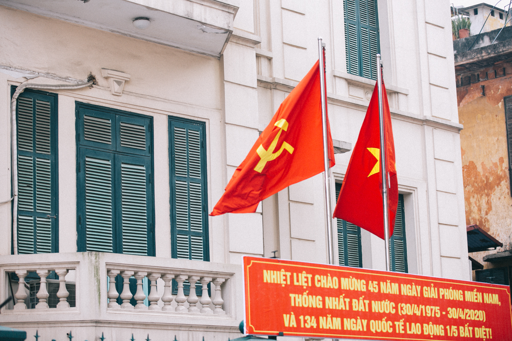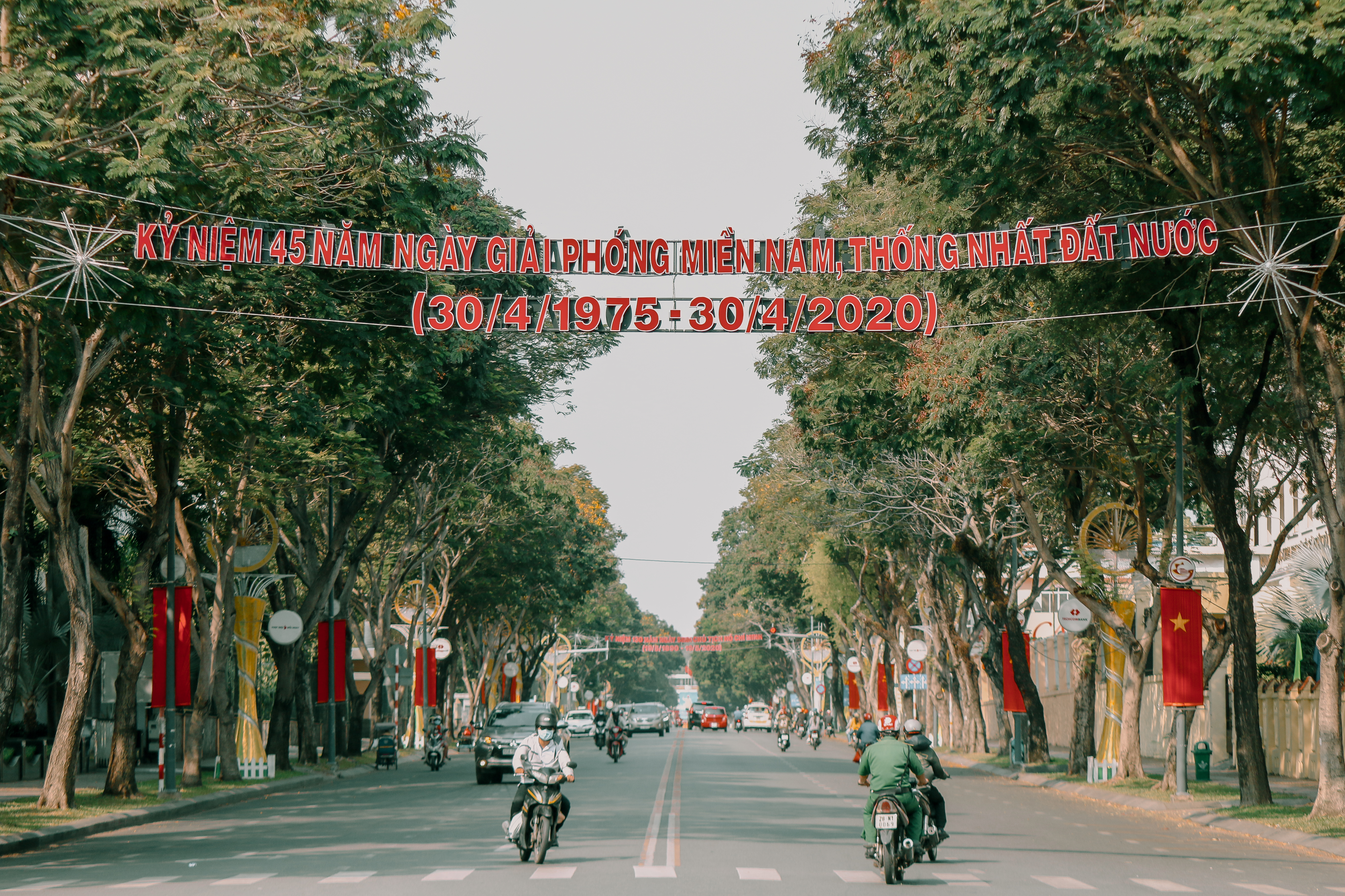 Kỷ niệm ngày Giải phóng miền Nam, thống nhất đất nước (30/4/1975 - 30/4/2020), màu cờ đỏ sao vàng rợp khắp các tuyến đường ở hai thành phố lớn nhất cả nước: Hà Nội và TP HCM.