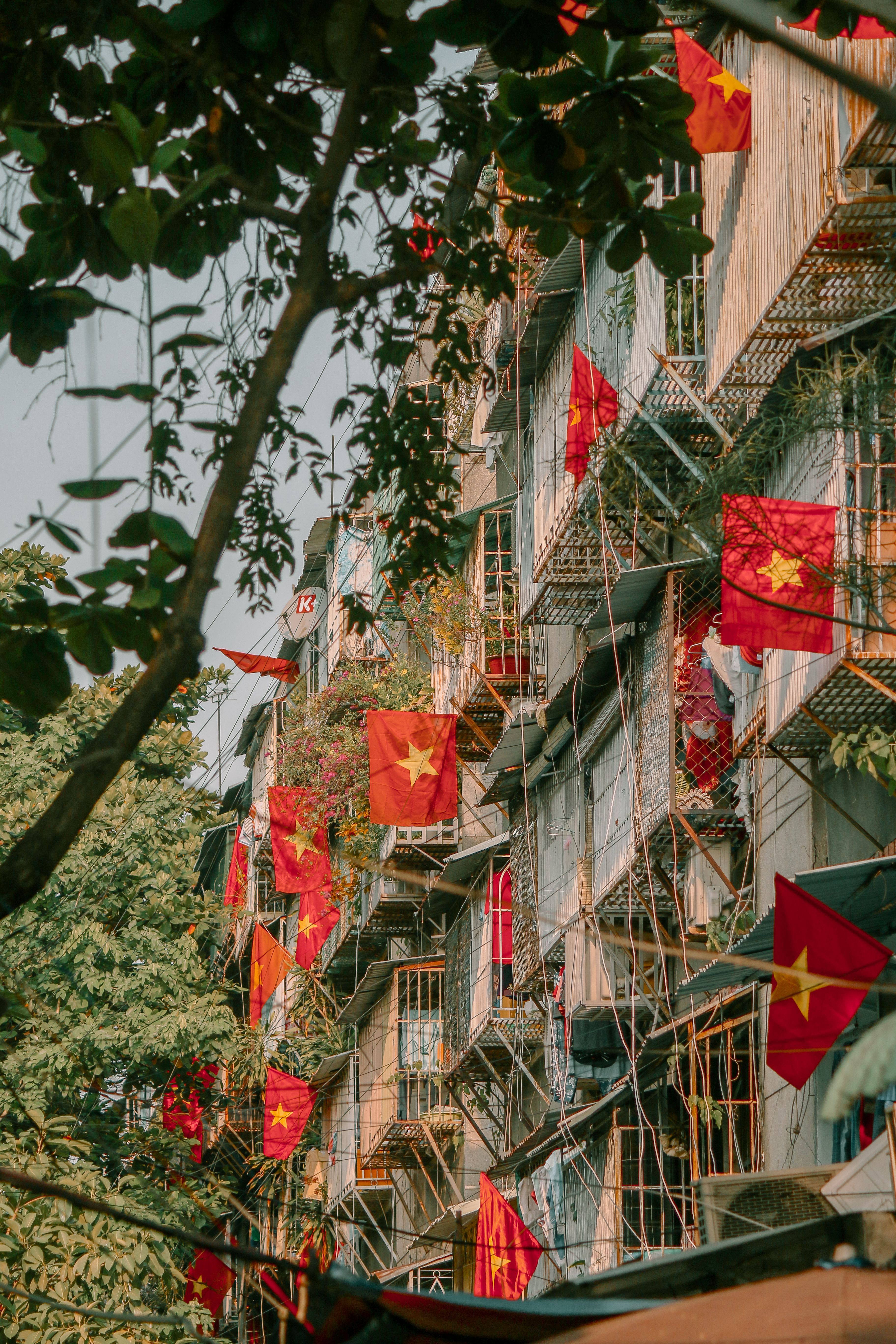 Tại Hà Nội, ngay cả trong từng con ngõ nhỏ, khu tập thể cũ,… cũng thấy bóng lá cờ Tổ Quốc mừng ngày lễ 30/4.