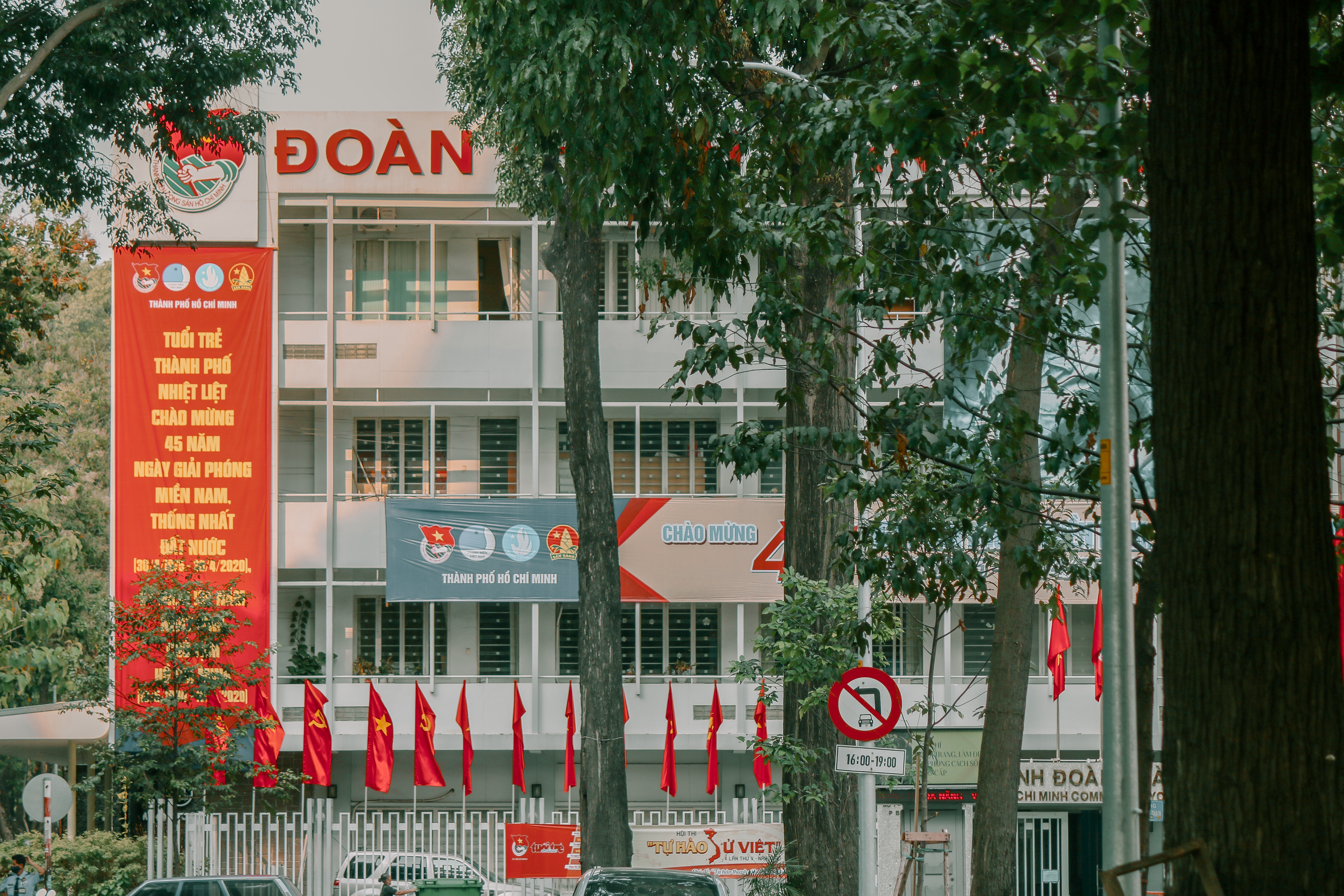 Trụ sở TW Đoàn Thanh niên Cộng sản TP HCM ngập sắc cờ đỏ sao vàng mừng ngày Giải phóng miền Nam, thống nhất đất nước.