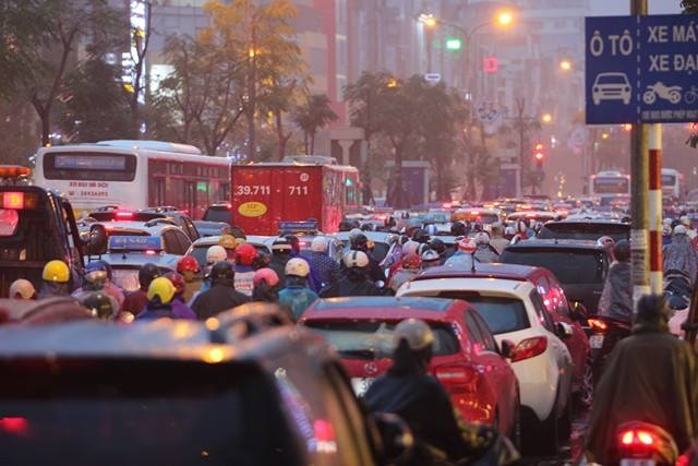 17h30, các phương tiện càng ken đặc nghẹt thở khu vực Xã Đàn hướng Ô Chợ Dừa.