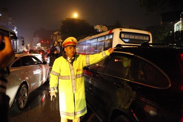 Đại tá Đào Vịnh Thắng, Trưởng phòng CSGT Hà Nội phân làn cùng các chiến sỹ tại ngã tư Cửa Nam.