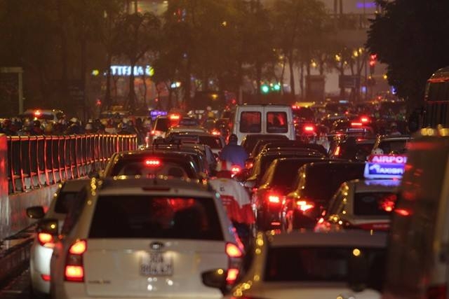 17h45, đường Khuất Duy Tiến tắc nghẹt thở.