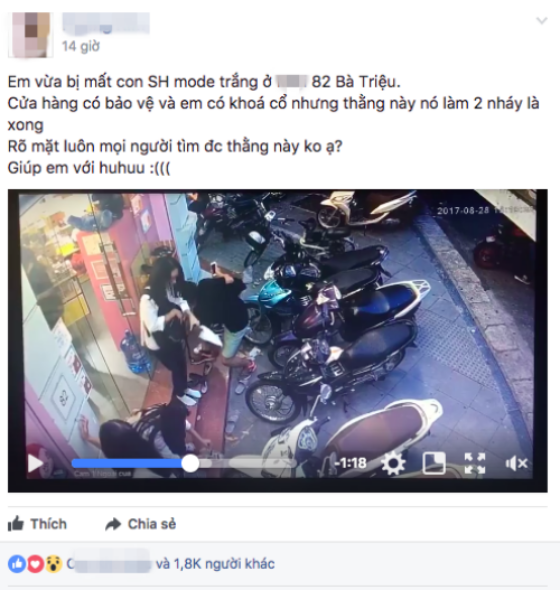 Liên hệ với chủ chiếc xe bị lấy cắp, bạn H.K xác nhận chiếc SH trong clip trên là của mình, BKS 29D1 - 99706. “Lúc mất xong gọi quản lý thì không đến, bảo vệ thì bảo biết làm sao được bác tưởng xe nó. Mình đã báo sự việc lên công an phường Hàng Bài. Cửa hàng thì bảo trách nhiệm này thuộc về đội bảo vệ, nhưng mà lúc sáng nay anh cán bộ tiếp quản việc của em có hẹn em và bác bảo vệ trông ca đấy lúc 10h sáng thì có mỗi em đến, bác ý không đến mà cũng chả gọi điện thoại thông báo anh công an.”