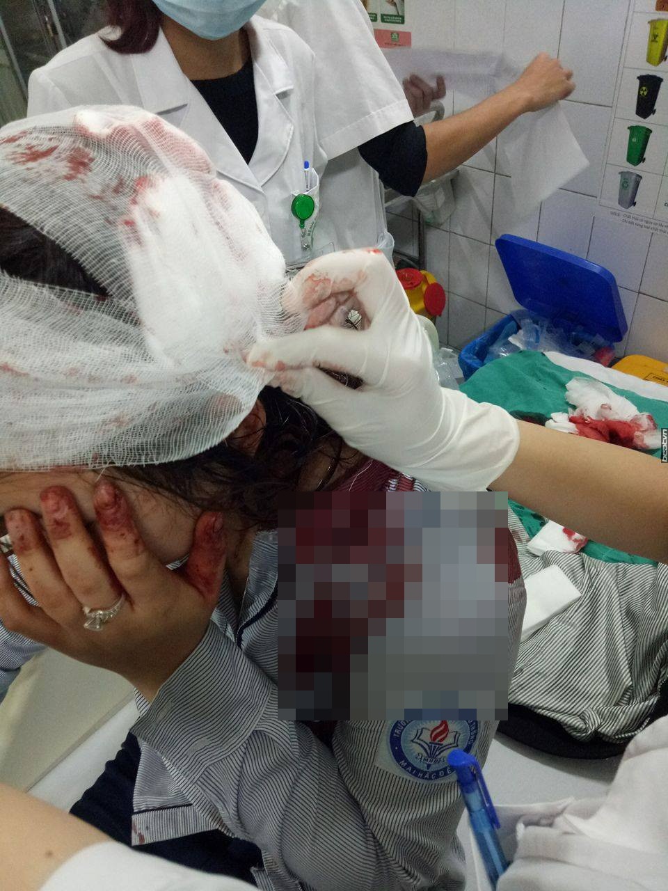 Nữ sinh bị đánh bằng tuýp sắt nên bị thương khá nặng.