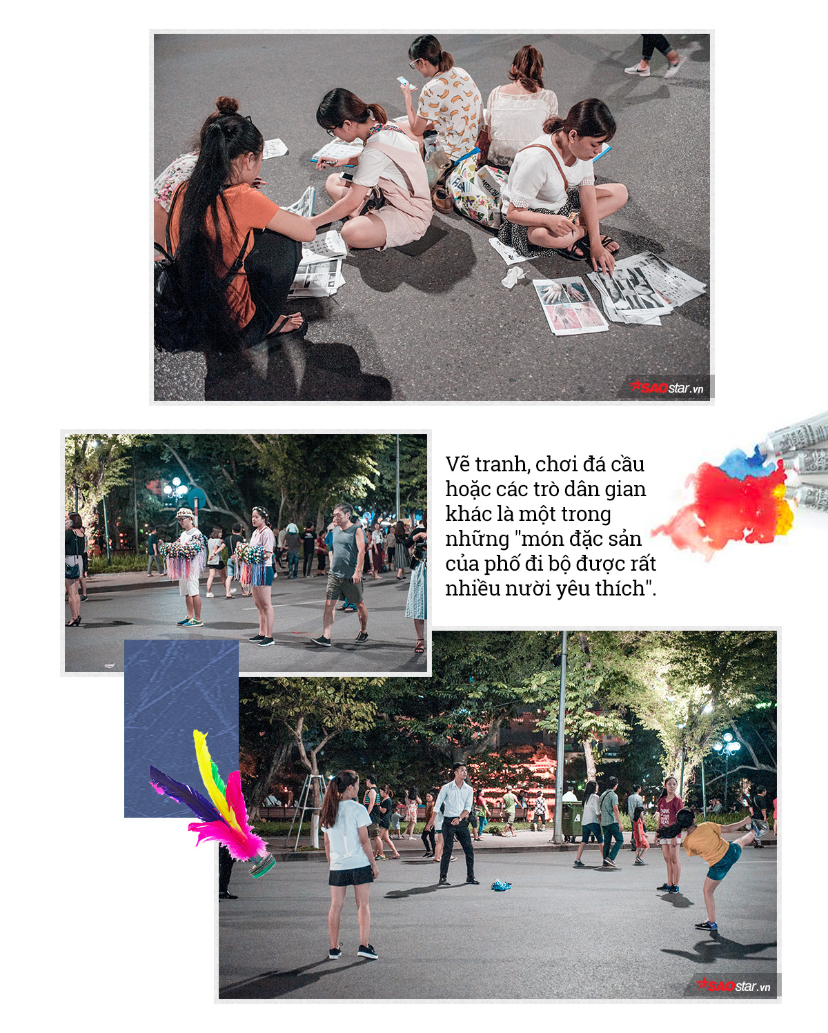 Sợ phố đi bộ buồn tẻ, ngay từ ngày khai trương, anh Ngô Quý Đức (SN 1985, chủ nhiệm CLB MyHanoi) đã mang lên đây rất nhiều trò chơi dân gian. Nào là nhảy dây, ô ăn quan, kéo co, đi cầu khỉ, đá cầu, bịt mắt bắt dê… Tất cả đều là những trò chơi mà lâu lắm rồi, không gian chật chội ở thành phố đã không phép cho người ta nghĩ đến sự tồn tại của chúng.