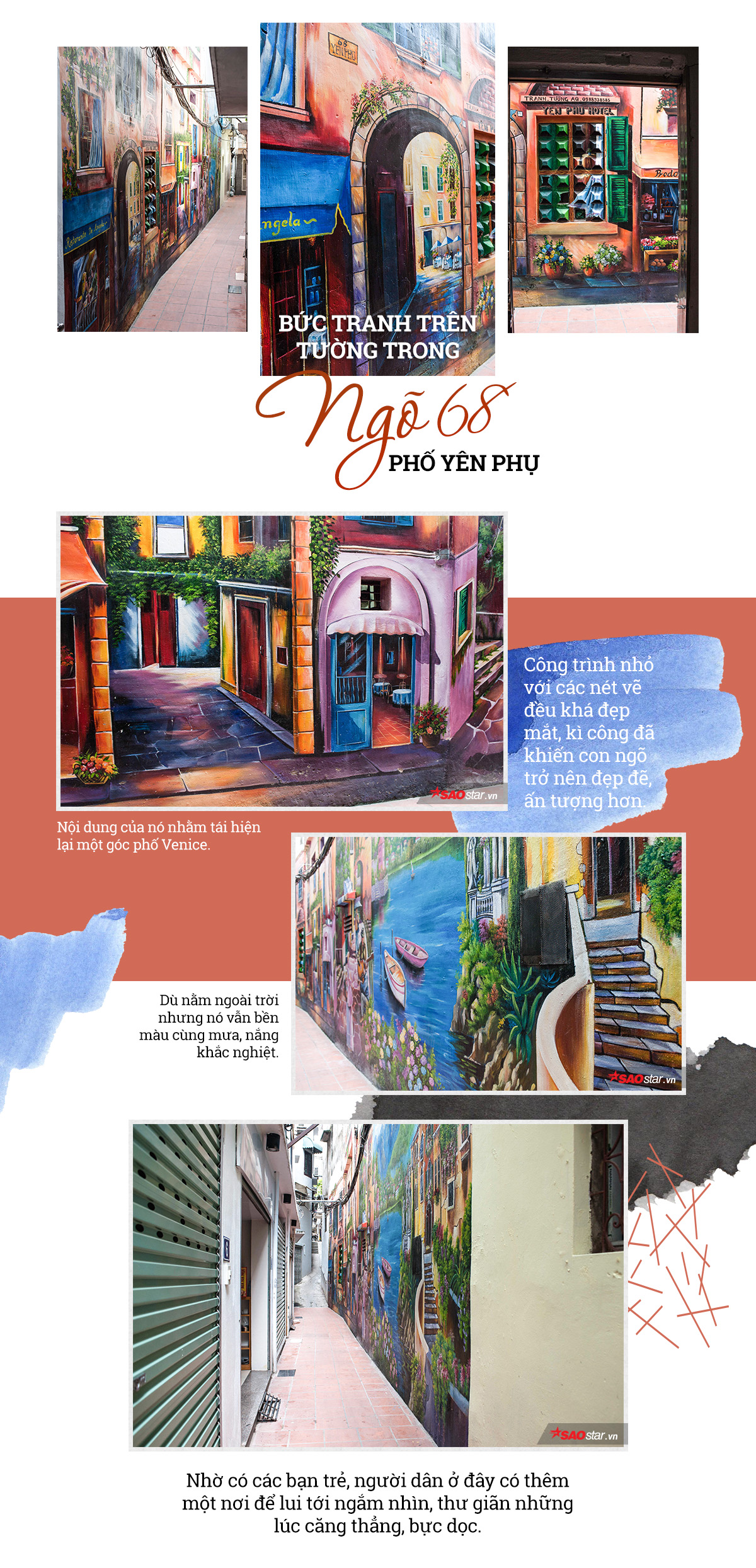 Ở ngõ 68, phố Yên Phụ, lần đầu tiên, người ta được chiêm ngưỡng những bức tranh 3D được vẽ thành khổ lớn trên tường, tái hiện lại góc phố Venice. Nhóm bạn trẻ, tác giả của bức tranh ấy đã nhiều lần vẽ tranh 3D cho các nhà hàng, quán ăn nhưng đây là lần đầu tiên, họ vẽ tranh ngoài trời phi lợi nhuận. Vẽ tranh không chỉ là niềm đam mê, ấy còn là vì nguyện ước được phủ lên thành phố vô vàn bức hình đa sắc, đa màu.