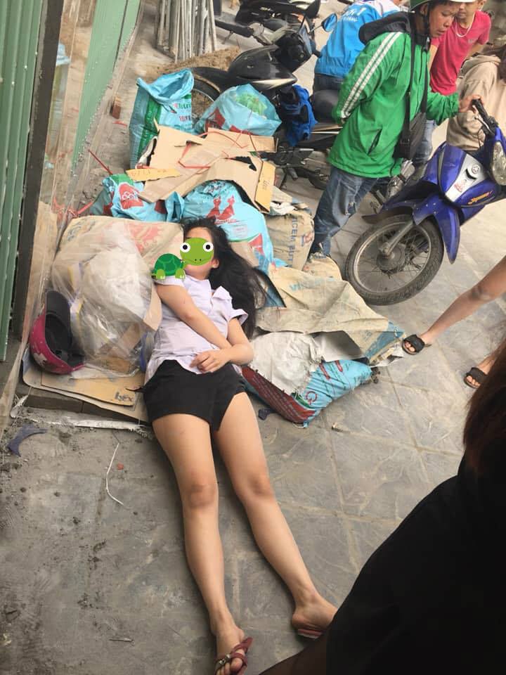 Sau vụ xô xát, cô gái áo trắng ngất tại chỗ, được đưa đi bệnh viện 198 chụp chiếu.