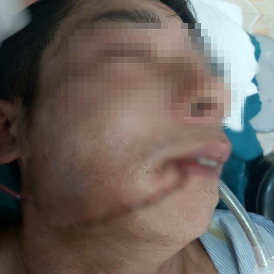 Anh Lực nhập viện trong tình trạng sức khỏe yếu, da xanh, vết thương nặng ở vùng mặt… Ngay sau khi tiếp nhận bệnh nhân, các y, bác sĩ trong bệnh viện đã tiến hành rửa vết thương, xét nghiệm, chụp phim và hội chẩn tiến hành khâu vết thương 3 lớp với hàng chục mũi khâu.