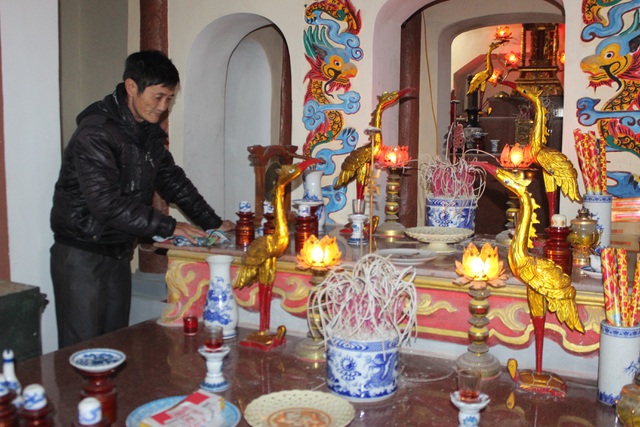 Ông Nguyễn Hữu Phương - Trưởng ban lễ nghi đền, miếu xã Cẩm Nhượng là người thường xuyên đến chăm sóc miếu thờ Đức ngư ông. Vào những ngày mùng 1 hoặc ngày rằm, ông đều đến thắp hương cho các ngôi mộ cá.