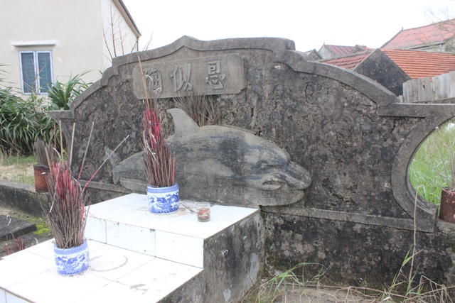Dòng chữ Đức Lưu Quang bằng chữ Hán với ý nghĩa ghi công ơn của loài cá voi đối với người dân đi biển.