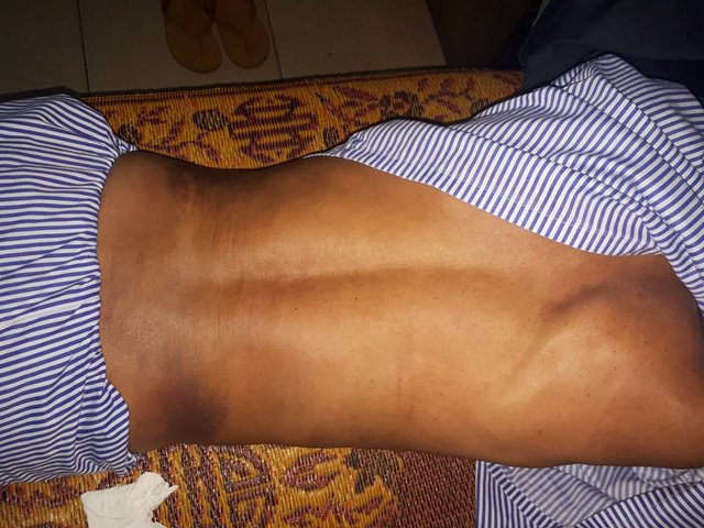 Các vết bầm tím vẫn hiện rõ trên khắp cơ thể ông Toàn.