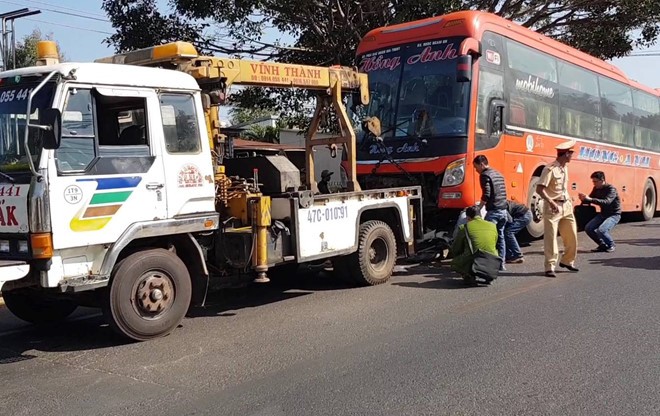 Vụ tai nạn giao thông xảy ra giữa ô tô khách và xe máy khiến cha con ông Từ Minh Thành (64 tuổi, ngụ xã Hòa Thuận) và con trai Từ Hải Hậu bị kéo lê hơn 30m dẫn đến tử vong.