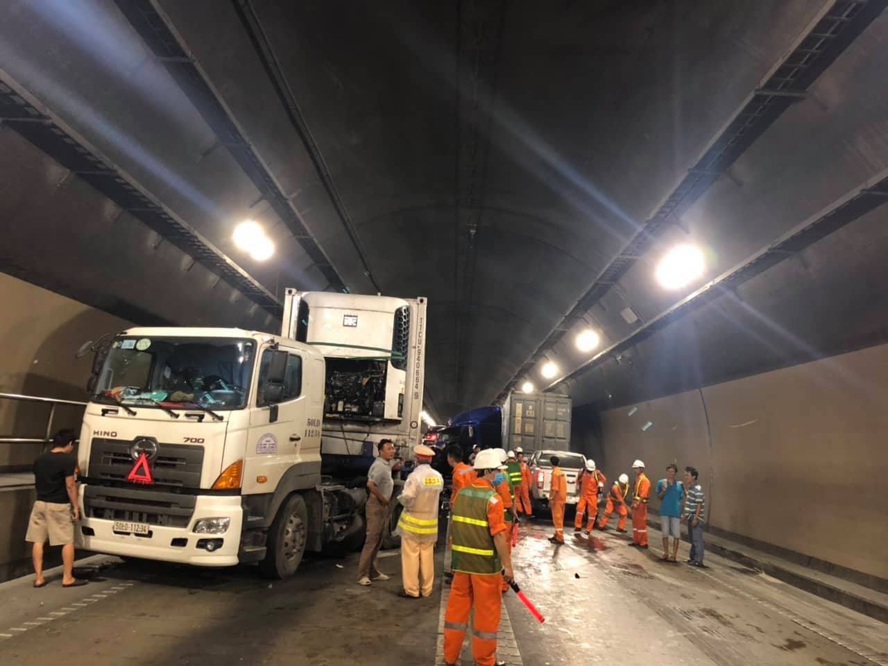 Thông tin ban đầu, khoảng 14h45 cùng ngày, xe đầu kéo BKS 29C-647.73, đang lưu thông qua hầm Hải Vân.