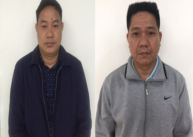 Trần Văn Khang (áo đen) và Nguyễn Văn An tại cơ quan công an. Ảnh: Thanh Niên
