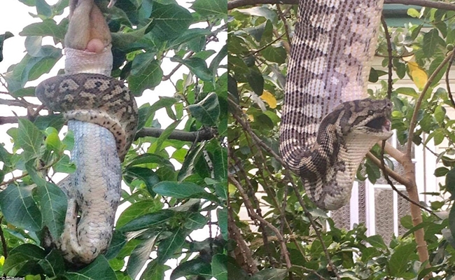 Với những người sống tại vùng nông thôn, động vật hoang dã lẻn vào nhà hay đang rập rình đâu đó xung quanh đã trở thành ác mộng của họ. Tuy nhiên, ngay cả ở trong thành phố, bạn có thể cũng phải chứng kiến những cảnh tượng hãi hùng như thế này: một con trăn dài 2m đang buông mình trên cây và nuốt trọn con thú có túi tội nghiệp.