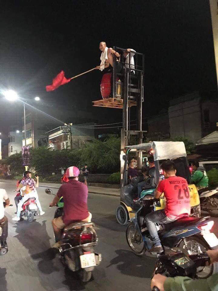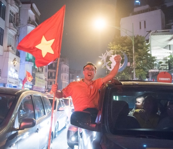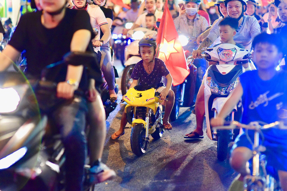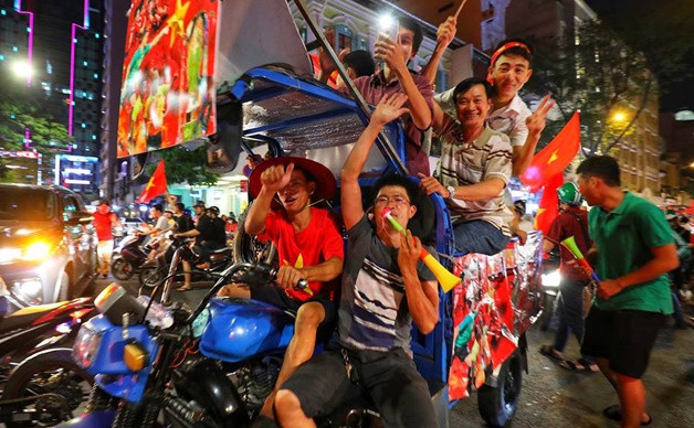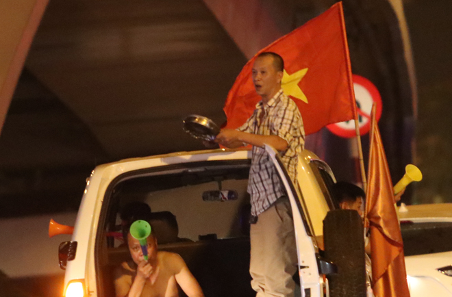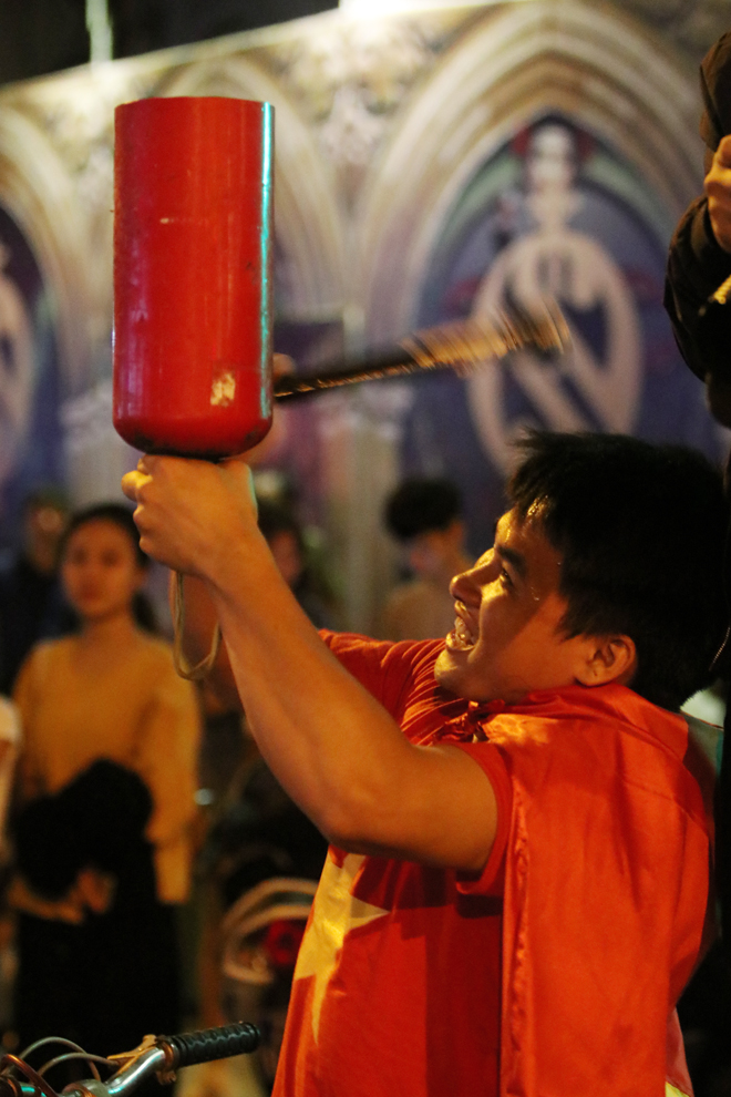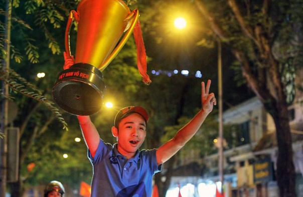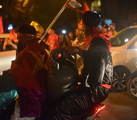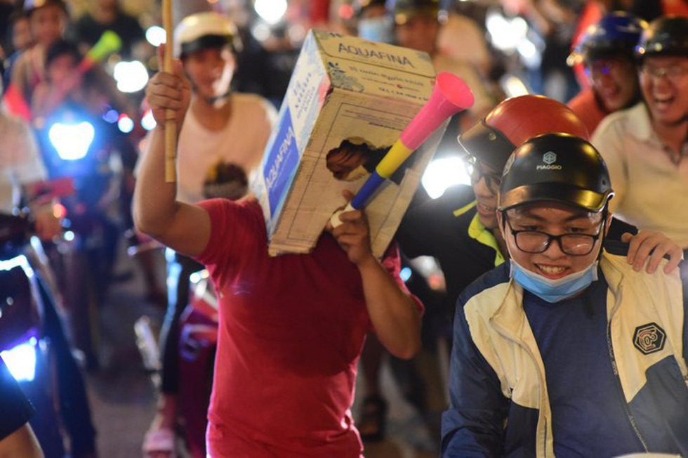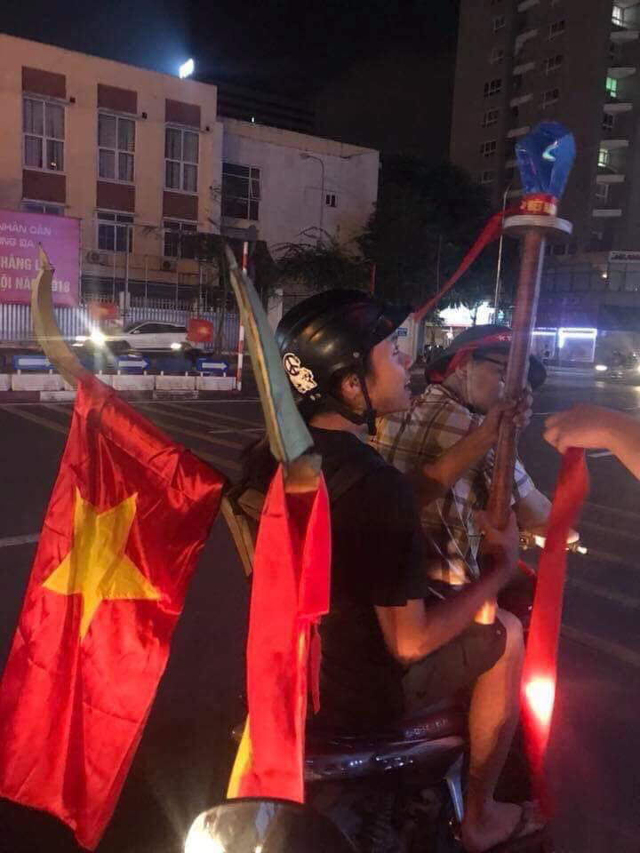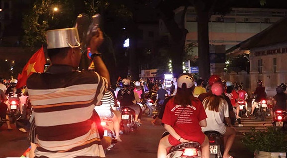 Sau trận thắng, hàng triệu người khắp mọi miền tổ quốc đã đổ ra đường ăn mừng. Kèn trống vang rền, cờ đỏ sao vàng tung bay đầy tự hào là những hình ảnh đâu đâu trên dải đất hình chữ S cũng có. Thế nhưng, trong số đó, có những cổ động viên đã có cách ăn mừng cực kỳ độc đáo bằng những phụ kiện cực kỳ “chất chơi”.