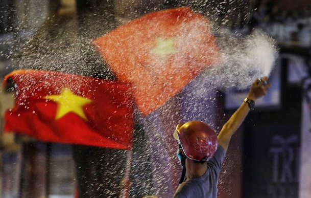 Chiếc vỏ bình chữa cháy cũng được đem ra để cổ vũ cho đội nhà. báo tin Tức.