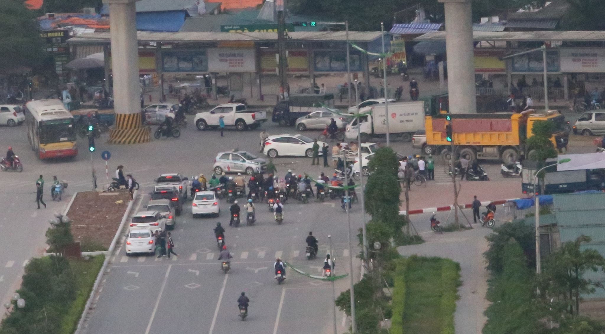 Ngay sau khi vụ việc xảy ra, công an phường Minh Khai và đội CSGT số 6, công an TP Hà Nội đã có mặt tại hiện trường để phân làn giao thông.
