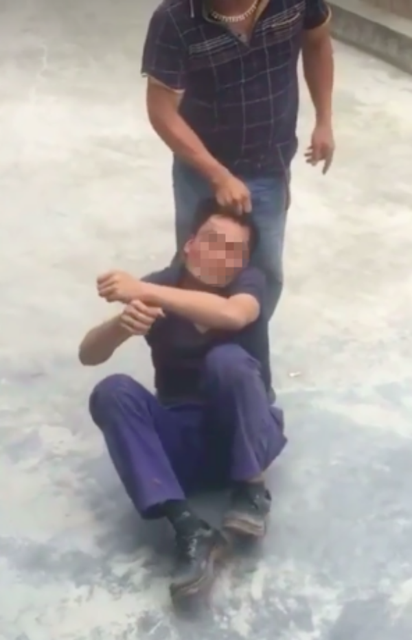 Một video phát tán trên mạng ghi lại cảnh người đàn ông quằn quại trên sân bị túm tóc và đánh bởi một người đàn ông khác được cho là cha của nạn nhân.