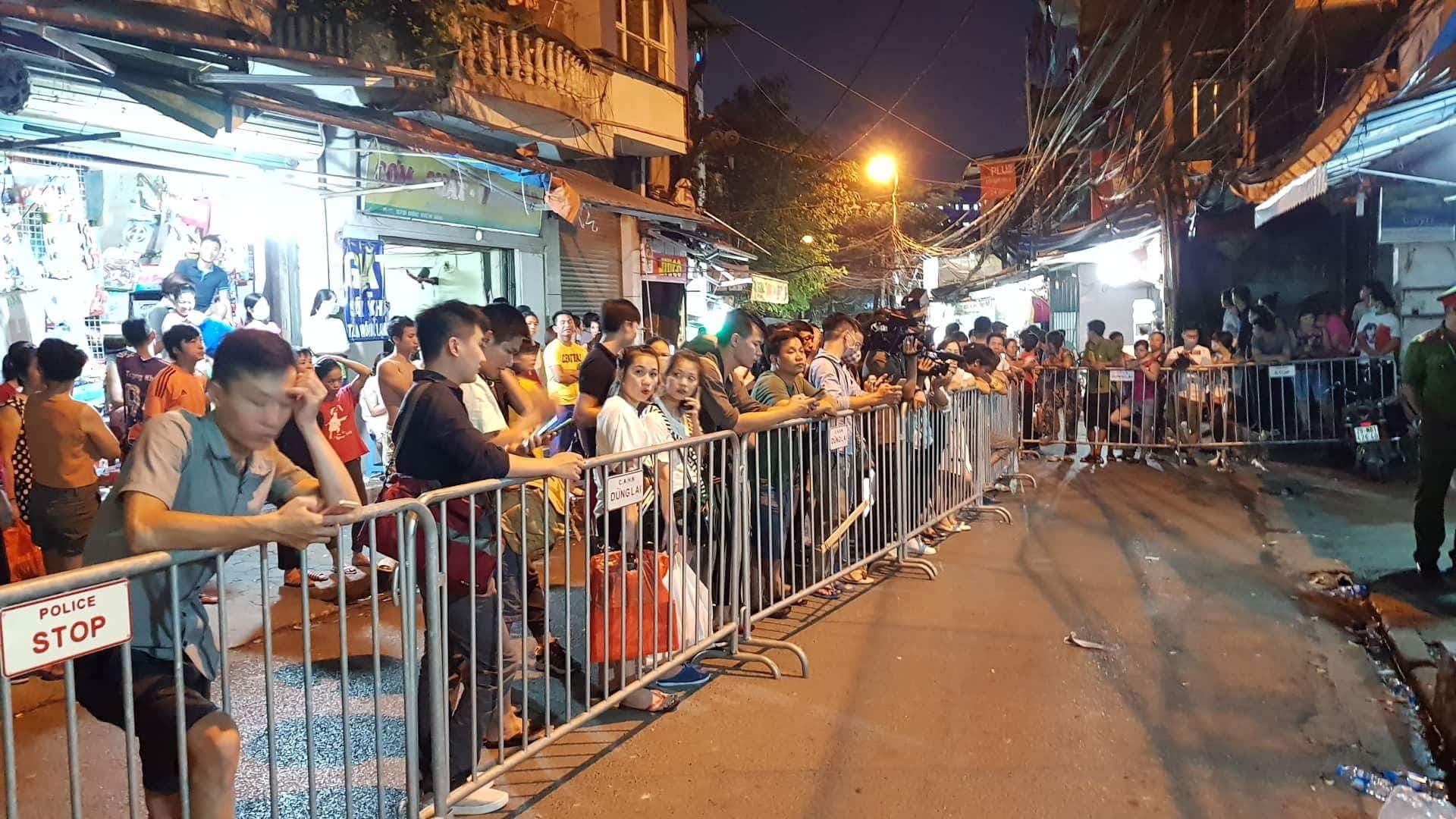 Nhiều người dân có mặt tại khu vực nơi phát hiện thi thể hai nạn nhân sau hoả hoạn.