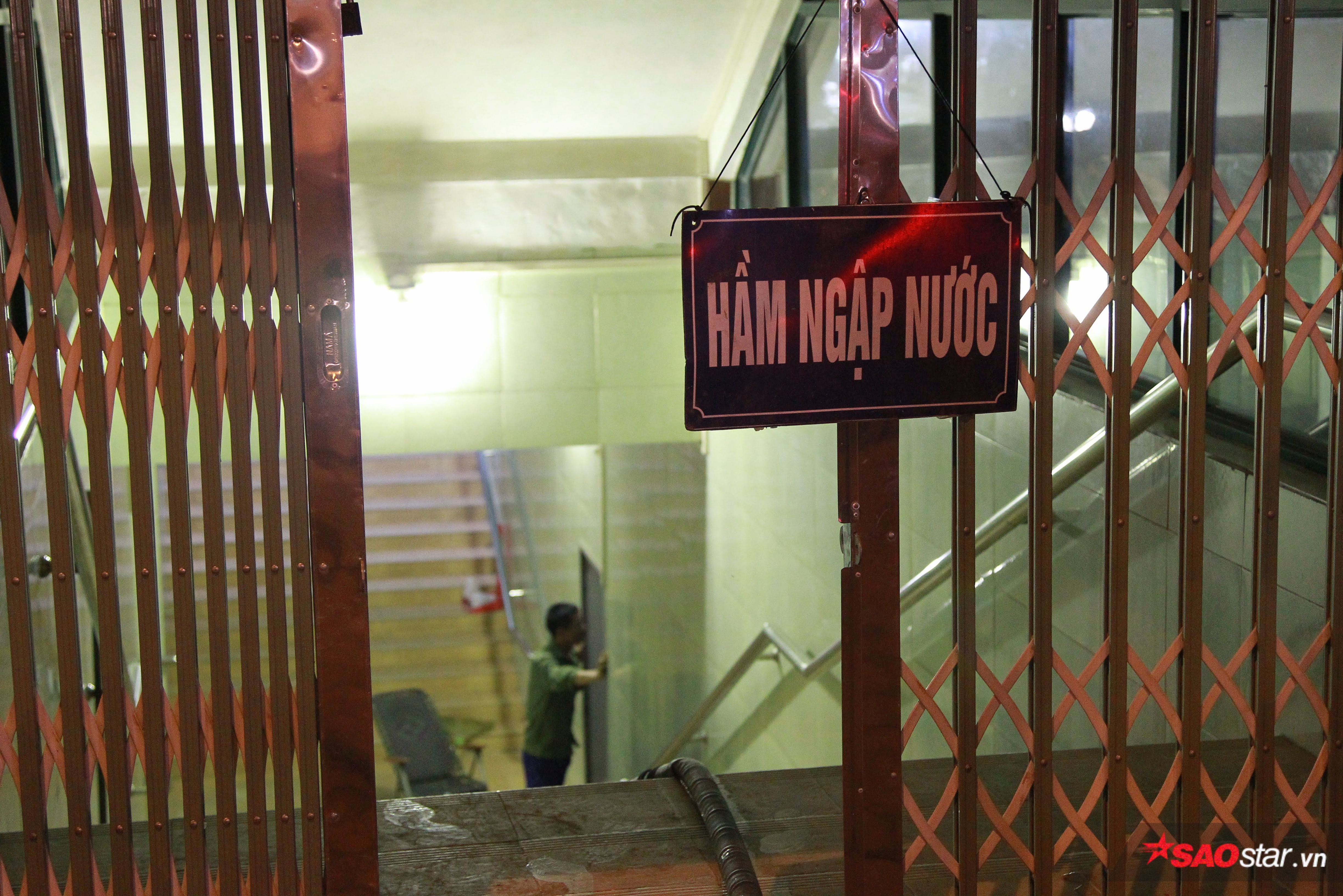 Do hầm bị ngập nên công nhân dọn vệ sinh buộc phải đăng biển để cảnh báo người dân có ý định sử dụng hầm qua đường.