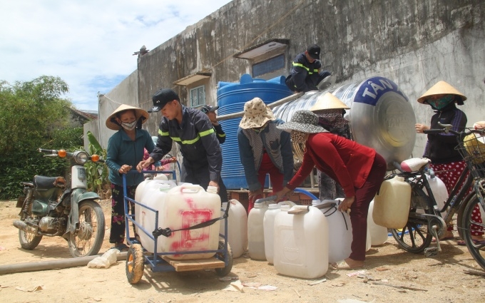 Chia sẻ trên Dân Trí, cụ ông Lê Đức Thông (80 tuổi) cho hay, gần 2 tháng nay, hệ thống nước máy bị hư hỏng, không có nước sạch nên người dân phải đi vùng khác mua về dùng tiết kiệm. Nhiều nhà đã bỏ tiền triệu để đóng giếng khoang nhưng nước không đủ để tắm giặt vì nguồn nước ở đây bị nhiễm mặn, không thể dùng ăn uống.