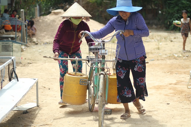 Theo Dân Trí, hơn 11h cùng ngày tại thôn Nhân Ân (xã Phước Thuận), nhiều người dân đi xe máy, đẩy xe rùa cùng các loại can nhựa, xô thùng,… thậm chí, có người đánh cả xe ba gác chở nhiều thùng phuy tới lấy nước sạch.